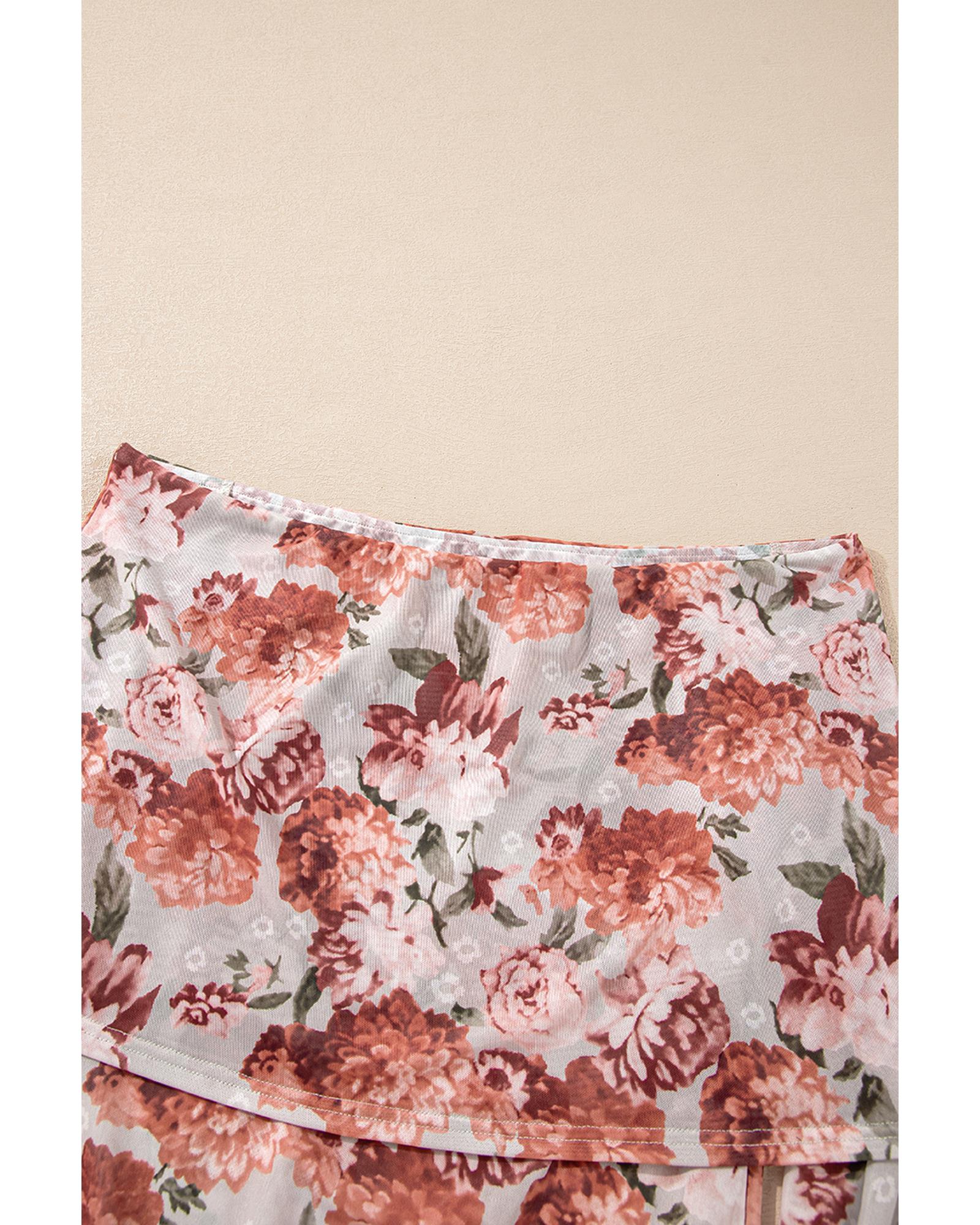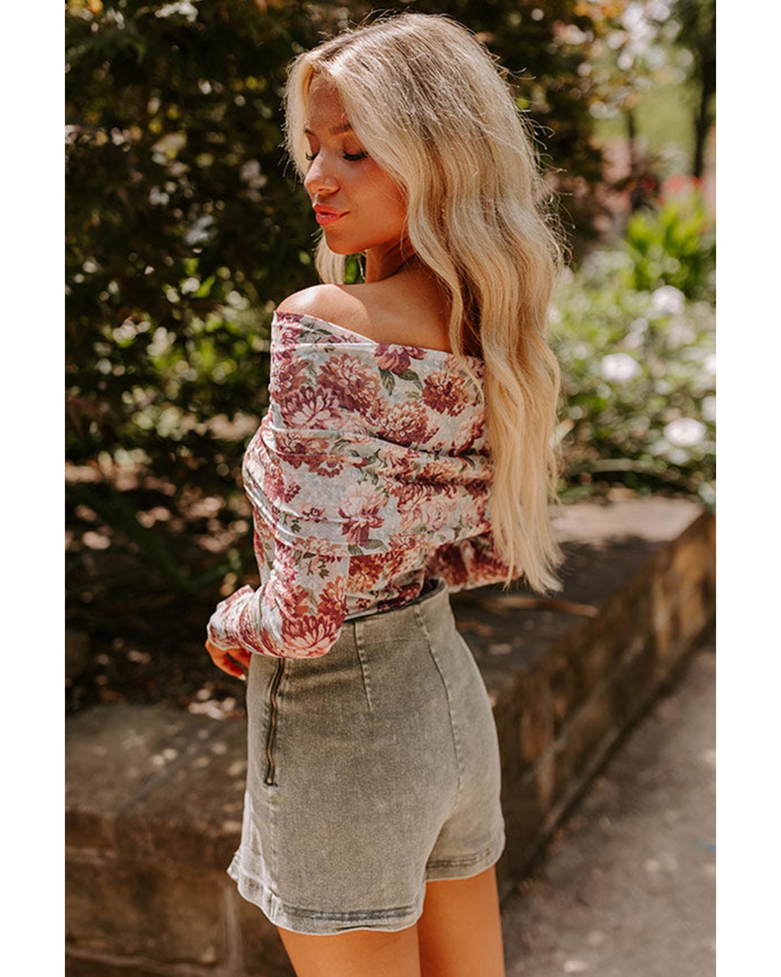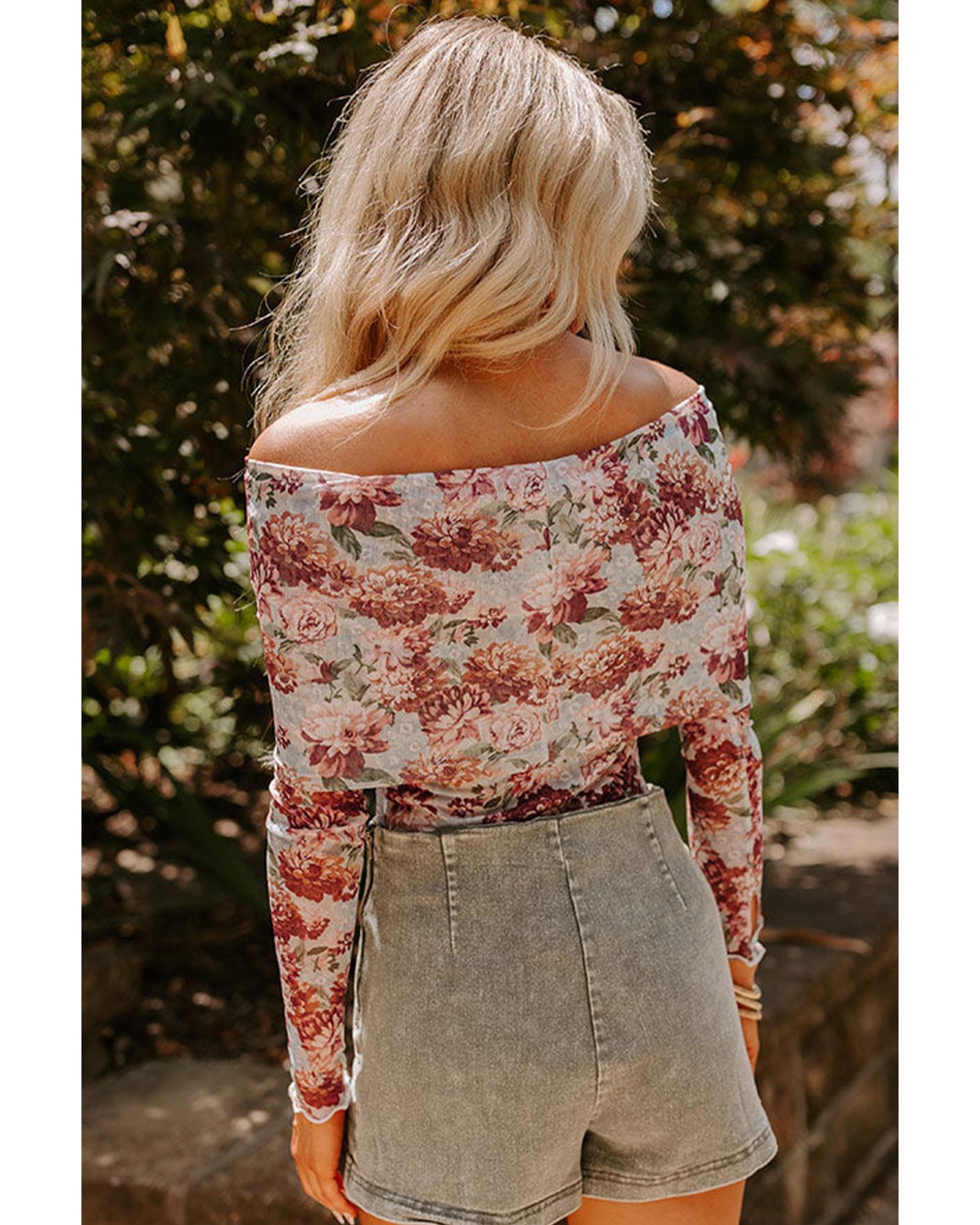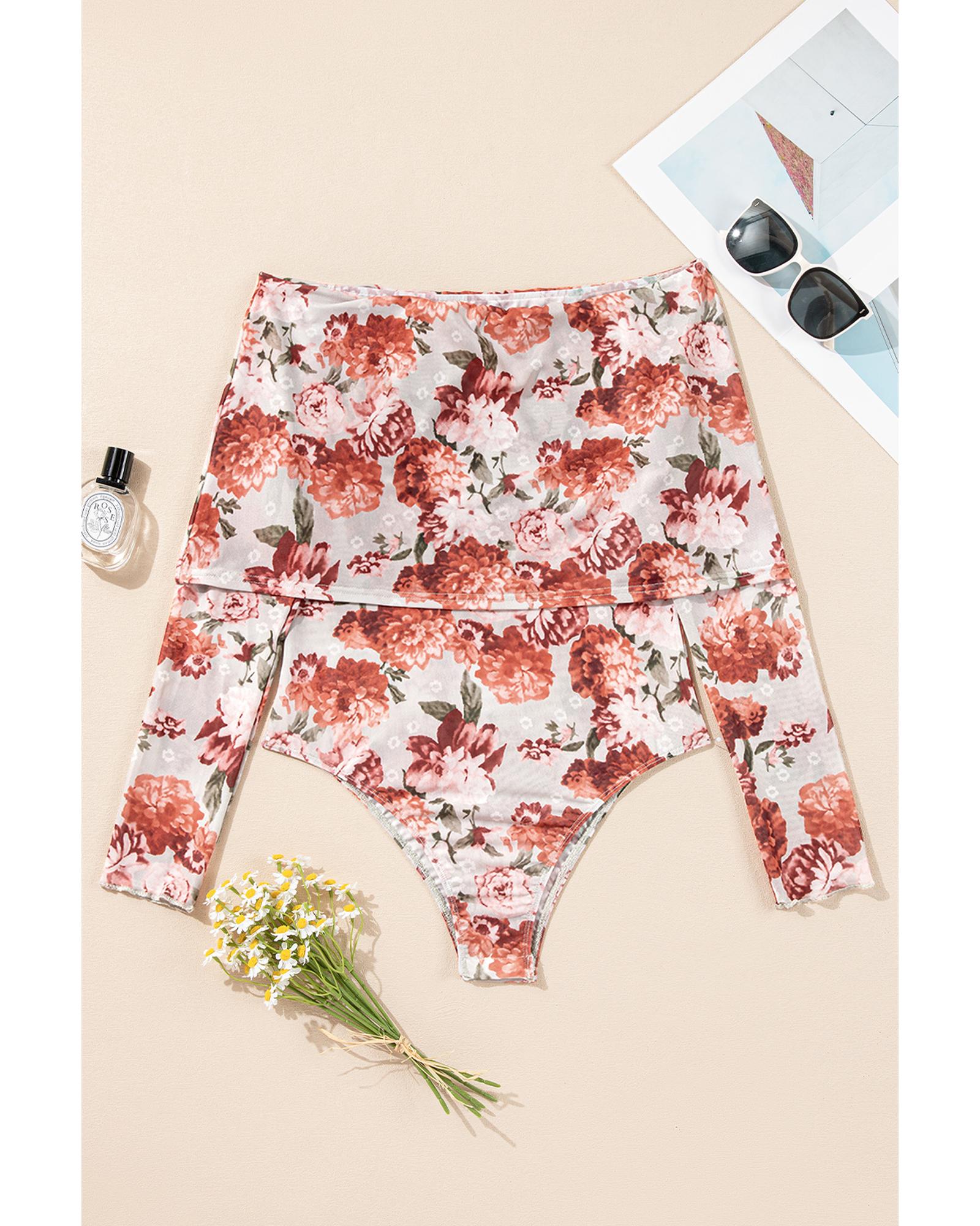 Pink Floral Printed Long Sleeve Sheath Bodysuit – L