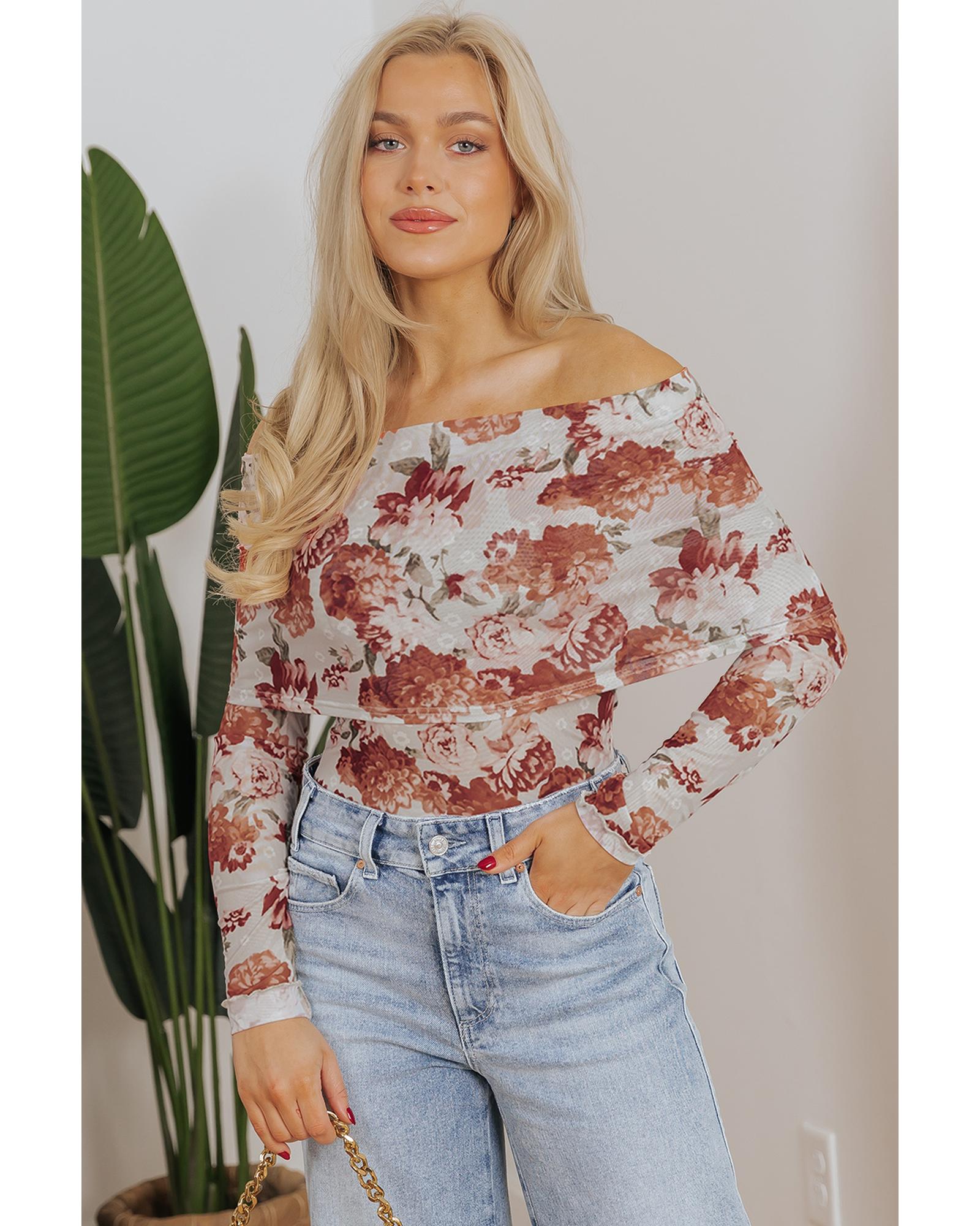 Pink Floral Printed Long Sleeve Sheath Bodysuit – M
