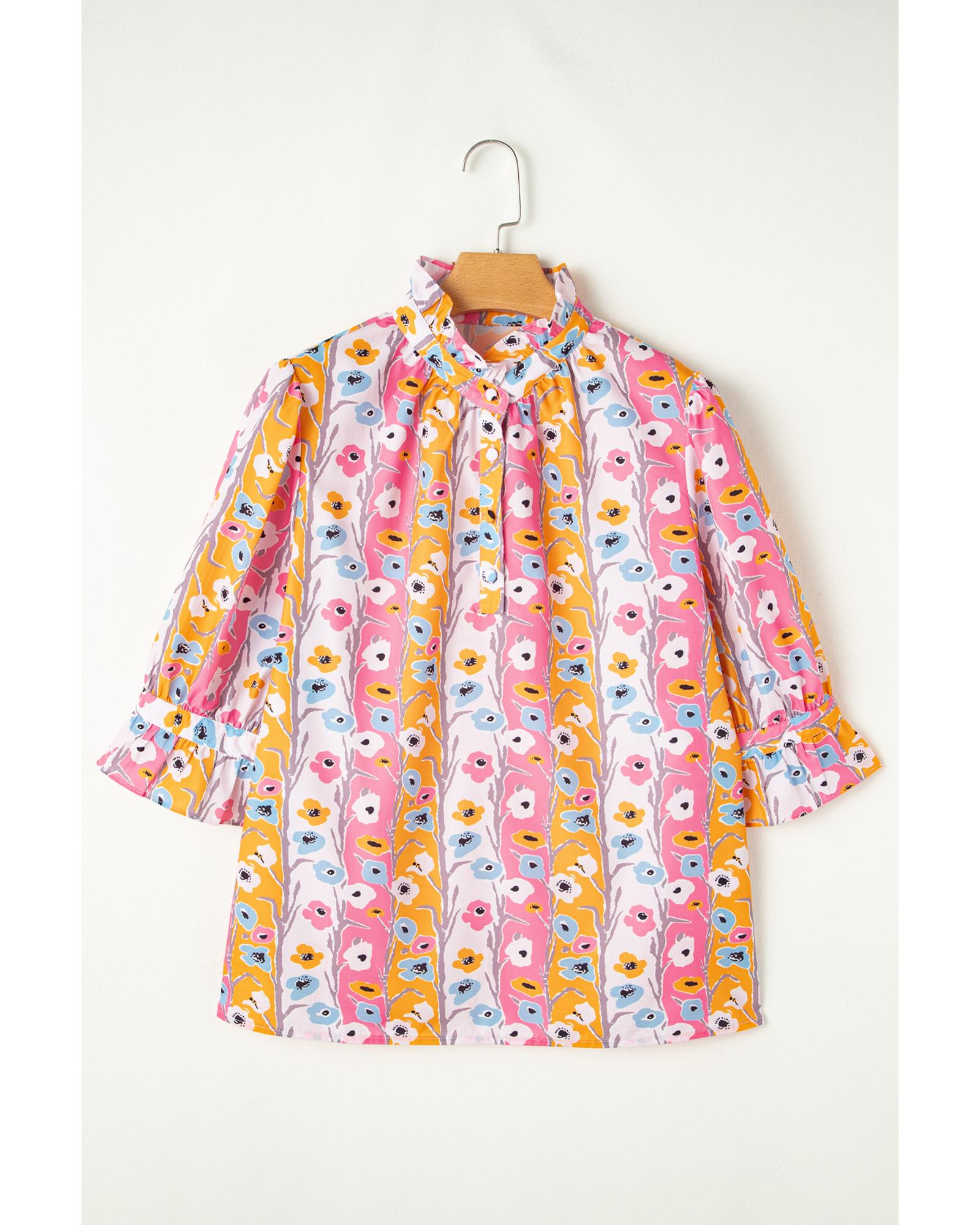 - Pink floral ruffled collar blouse top