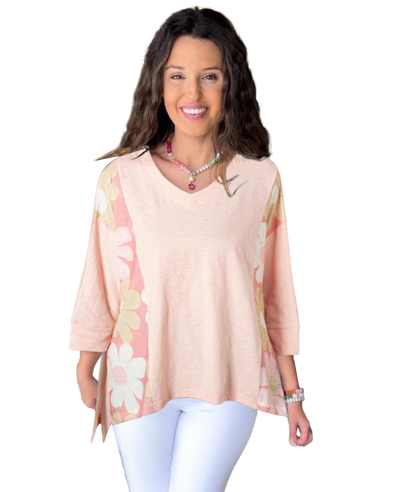 Pink Flower Patchwork Exposed Seam Oversized High Low Top – XL