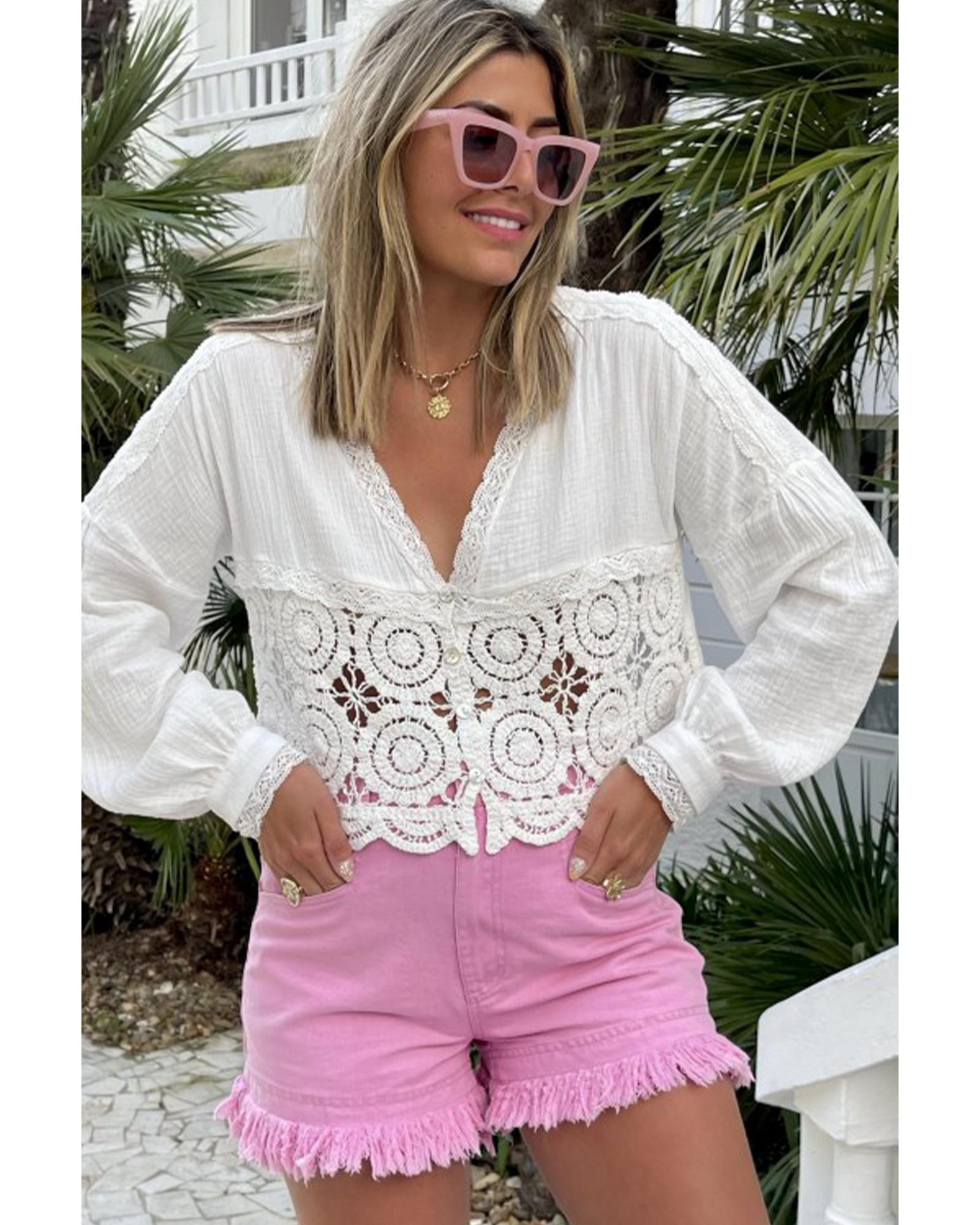 - Pink Frayed Edge Mid Rise Denim Shorts