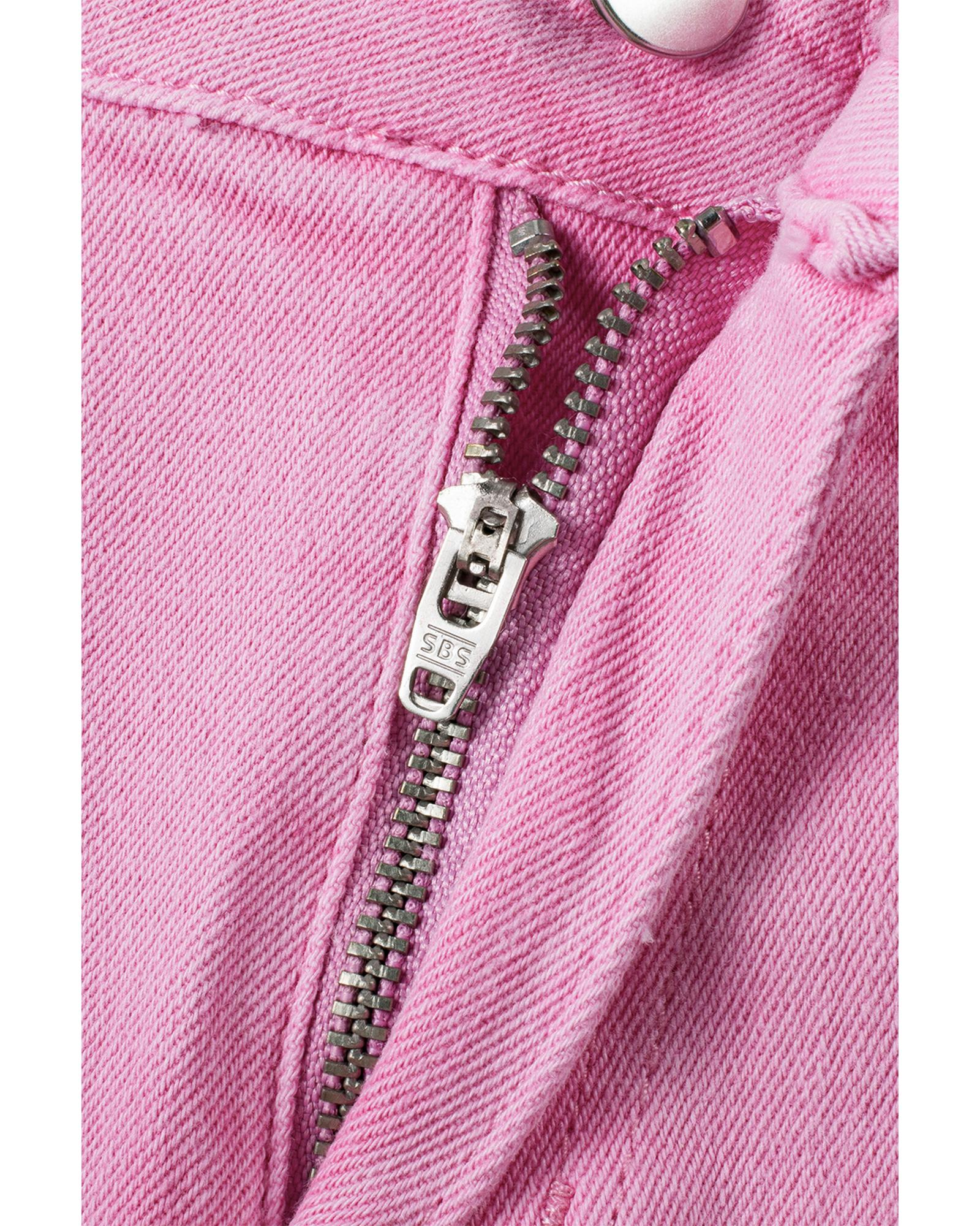 • Pink Frayed Edge Mid Rise Denim Shorts