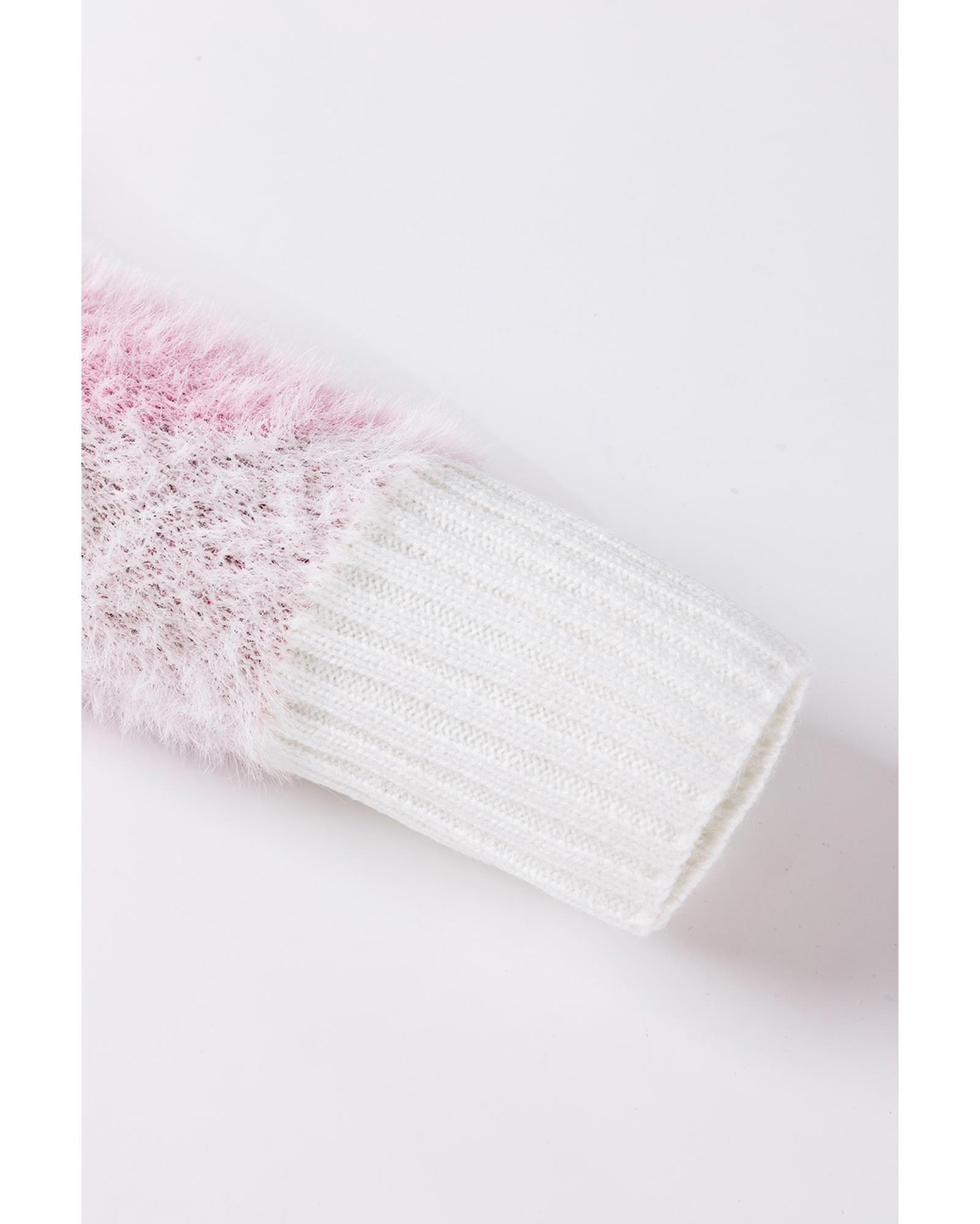 Pink Heart Leopard Print Pearled Ribbed Trim Fuzzy Sweater – M