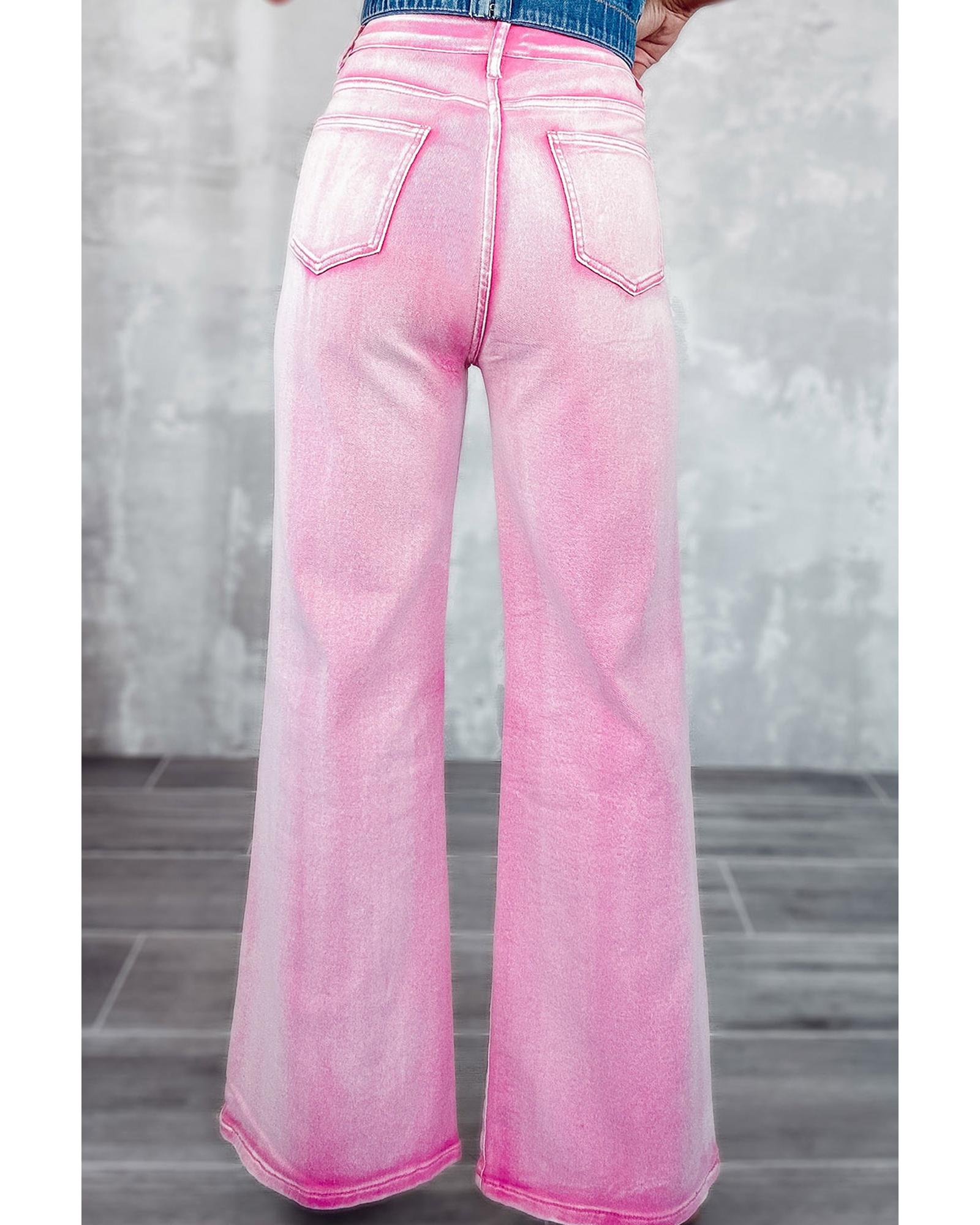 - Pink High Waist Rhinestone Cutout Wide Leg Jeans