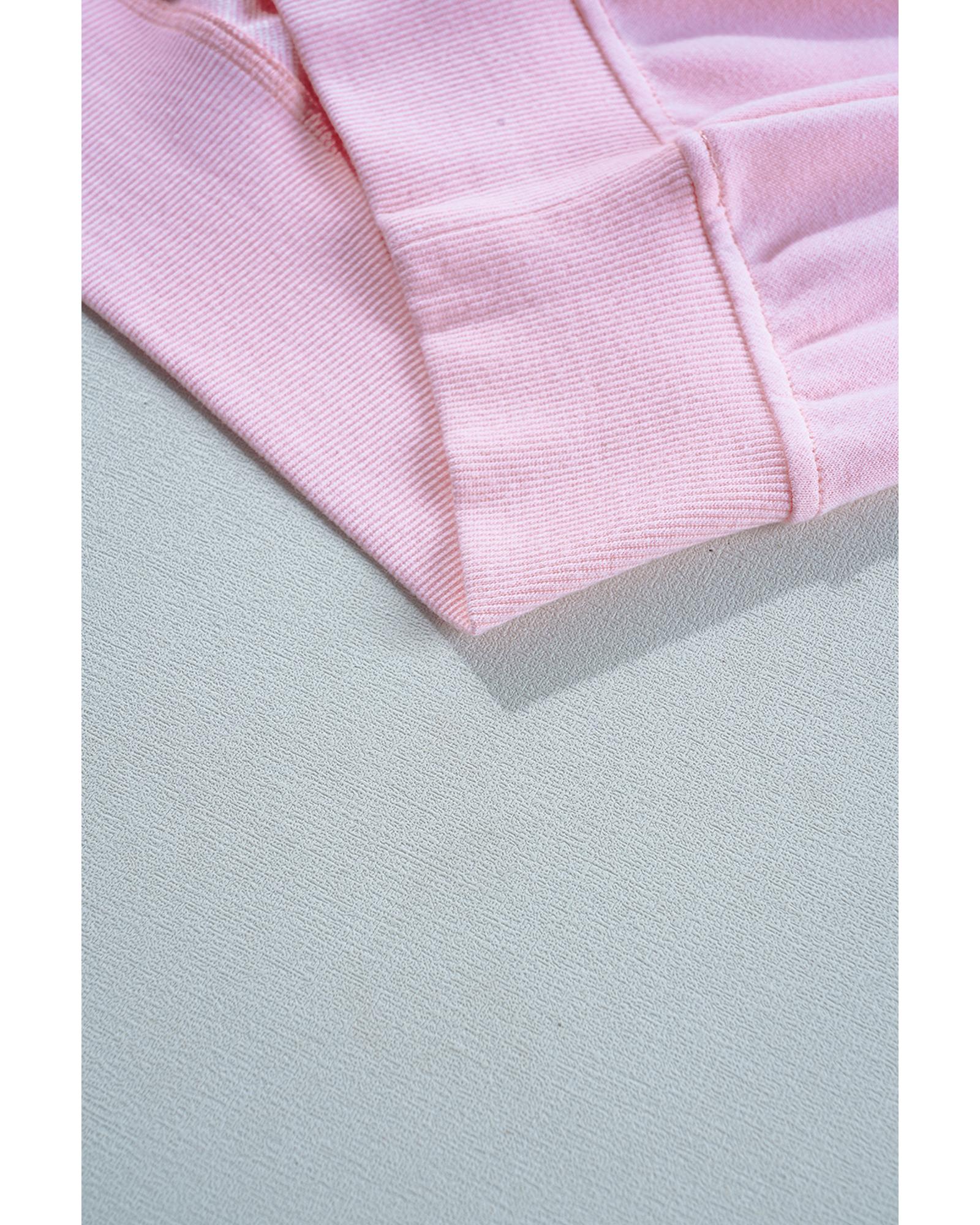 Pink Color Block Patchwork Corded Knit Loose Fit Hooded Blouse - L