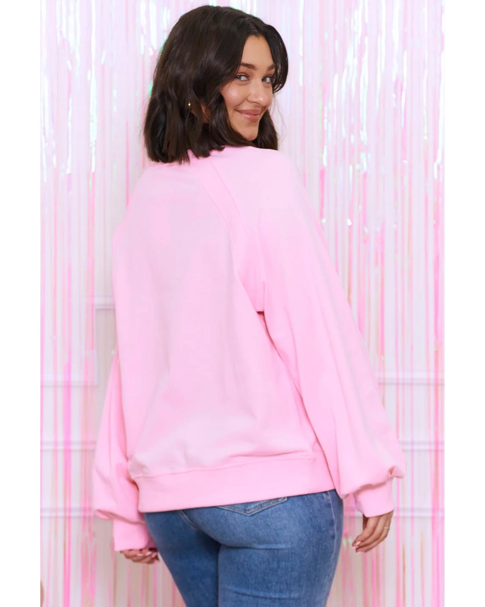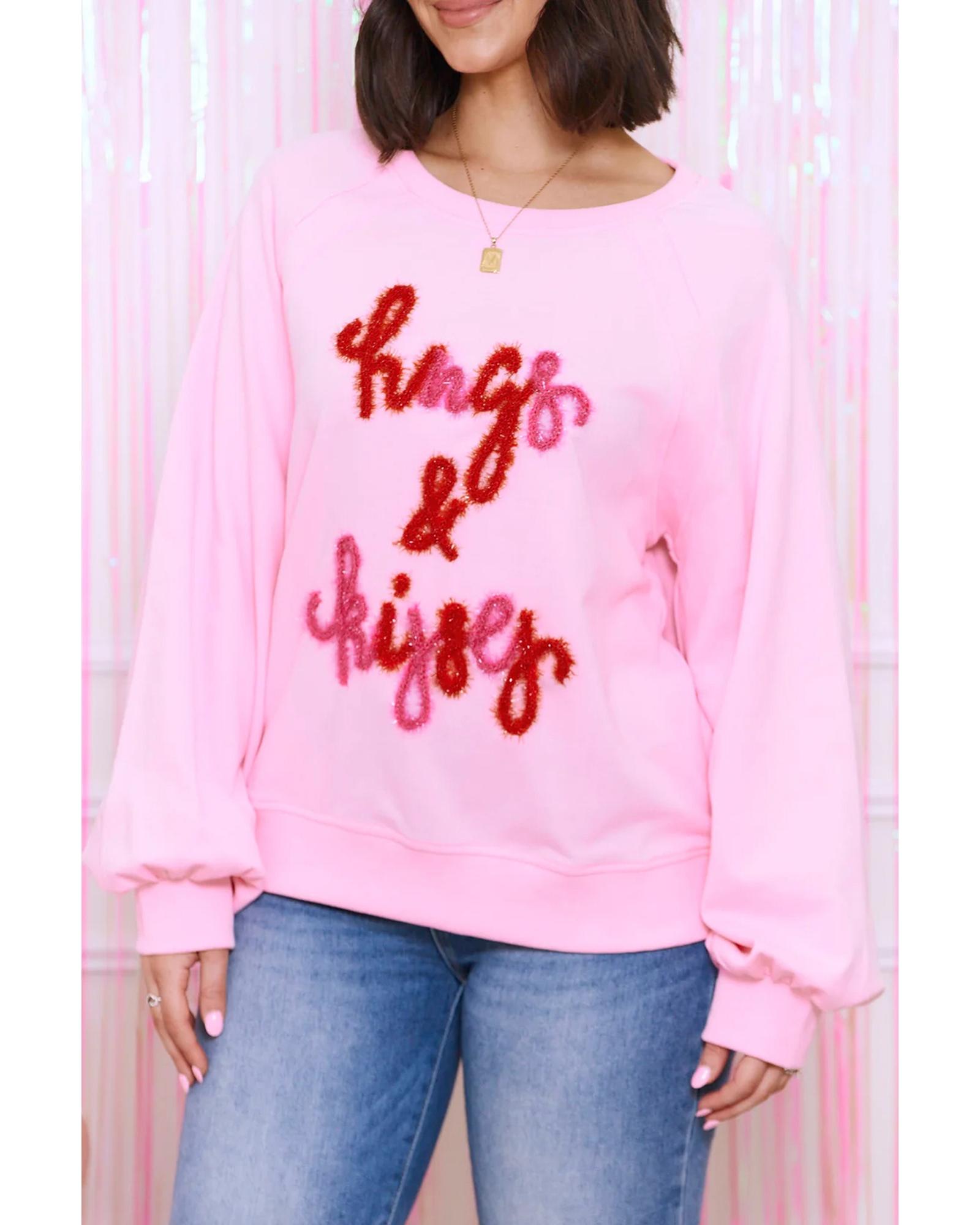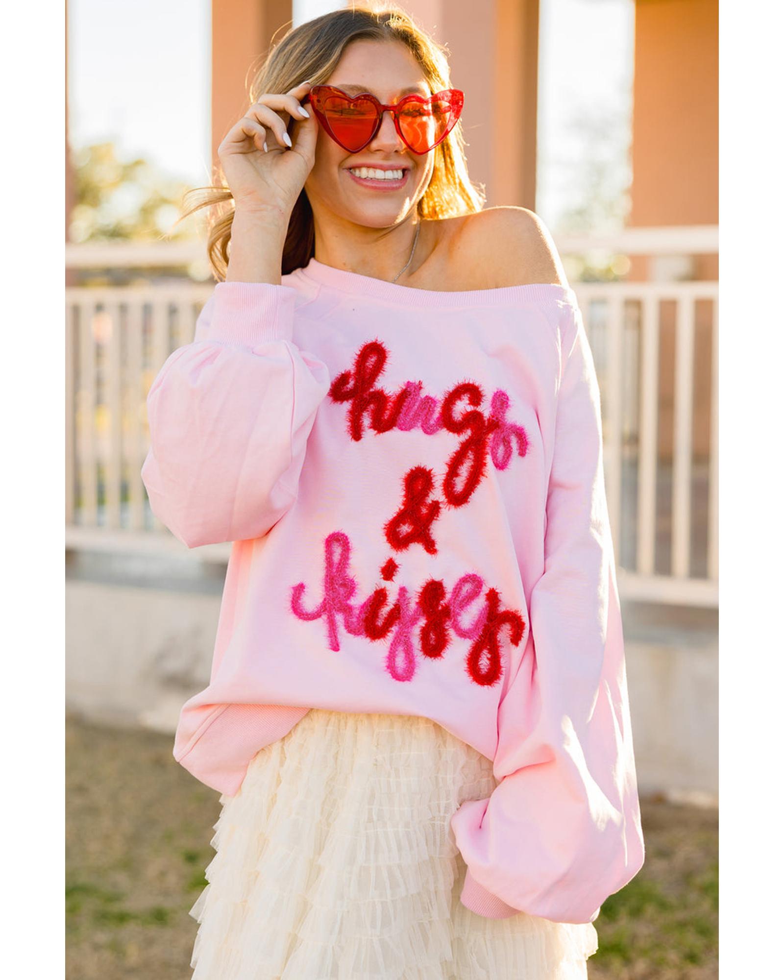 Pink Hugs and Kisses Pop Up Embroidered Raglan Sleeve Sweatshirt – S