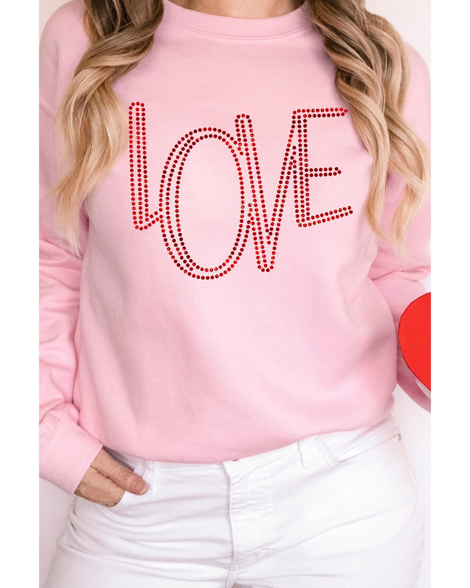 - Pink LOVE Graphic Drop Shoulder Valentines Pullover Sweatshirt