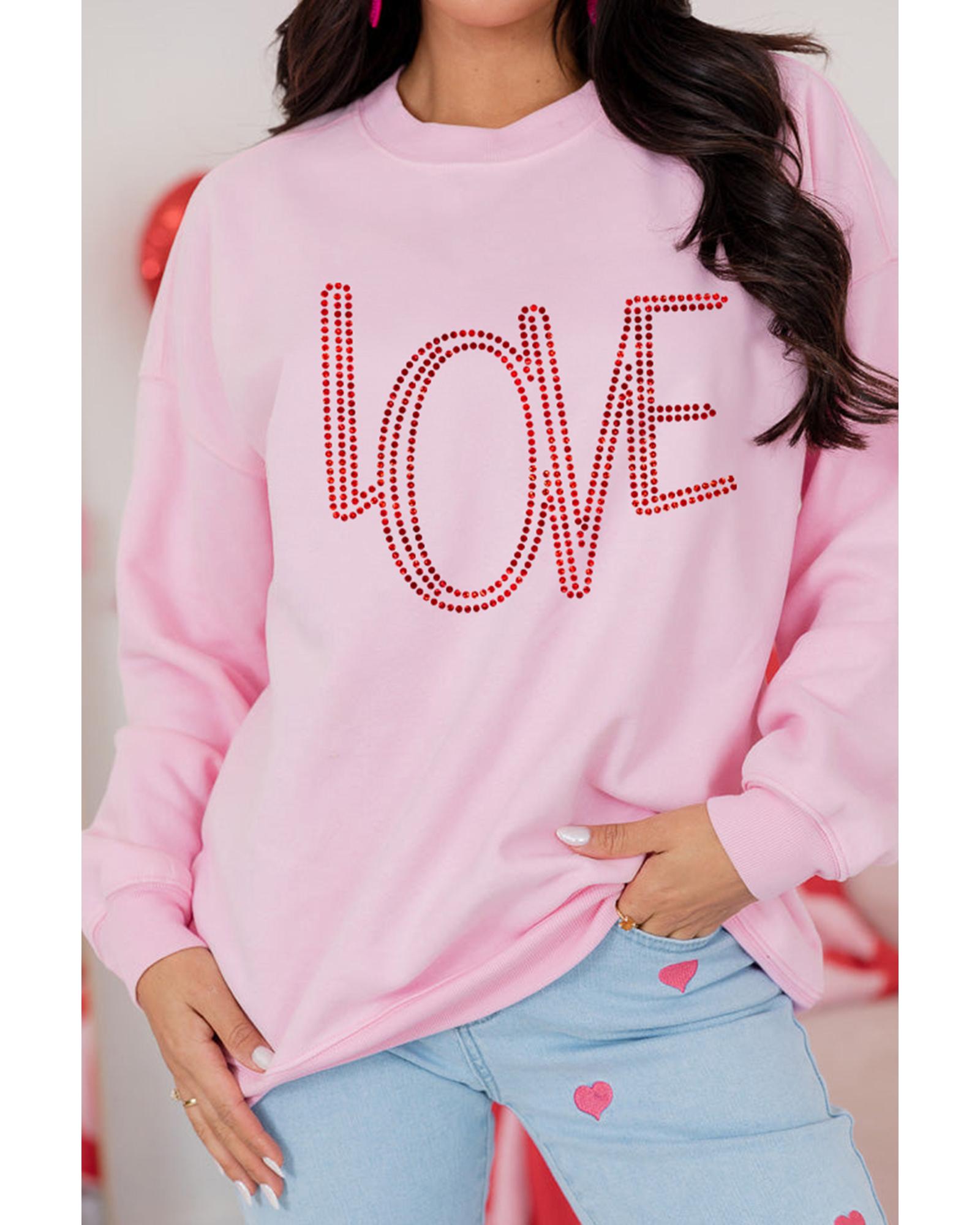 - Pink LOVE Graphic Drop Shoulder Valentines Pullover Sweatshirt
