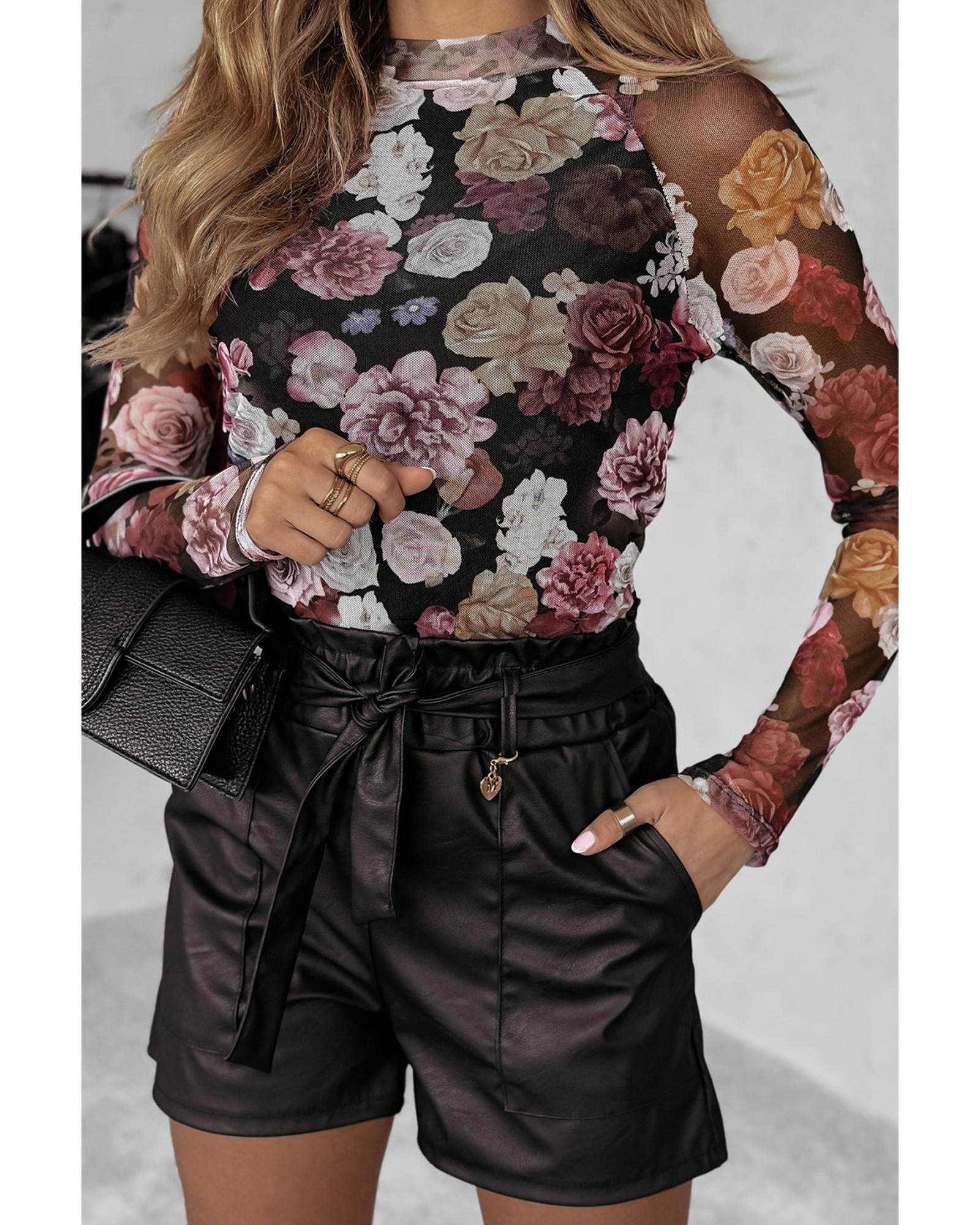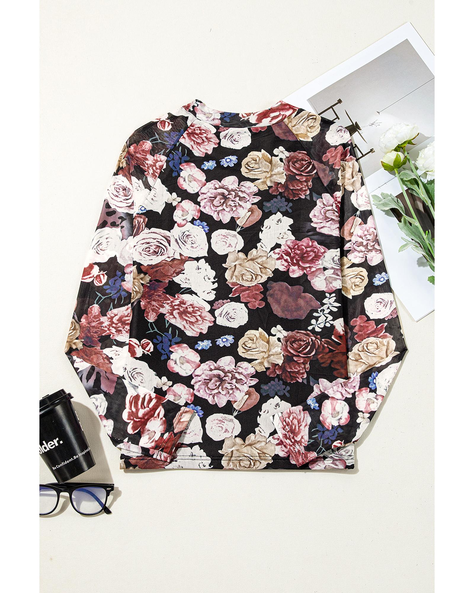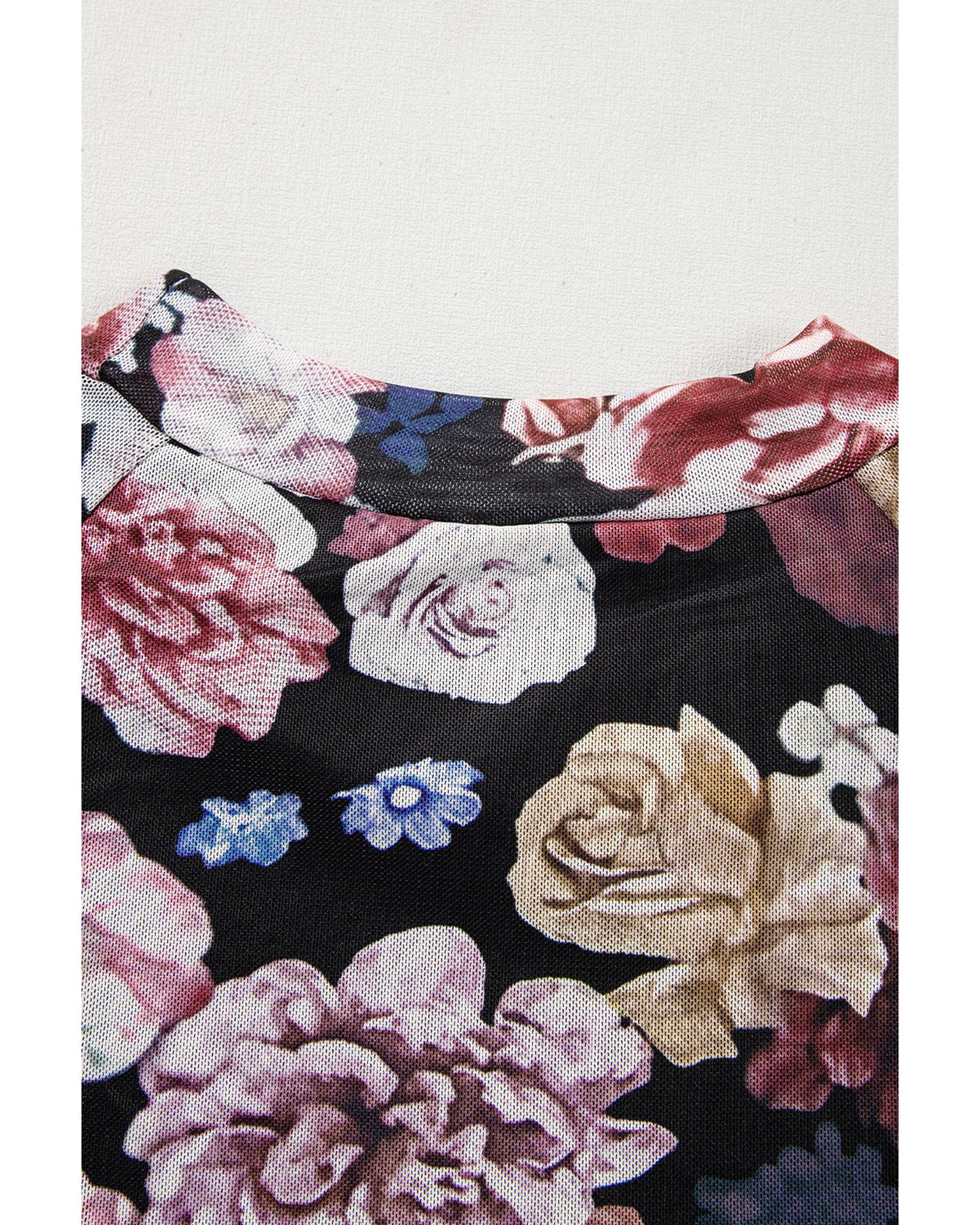 - Pink mesh top with floral print