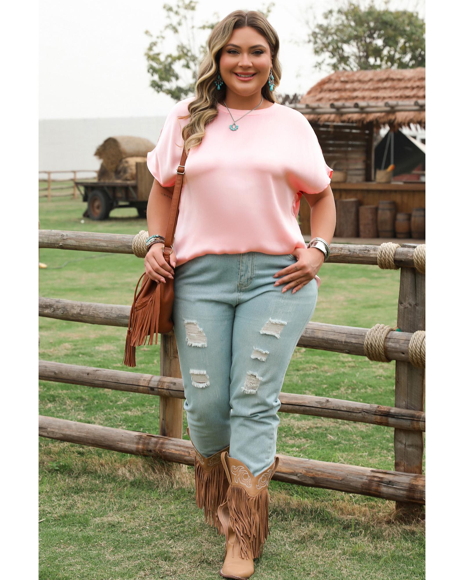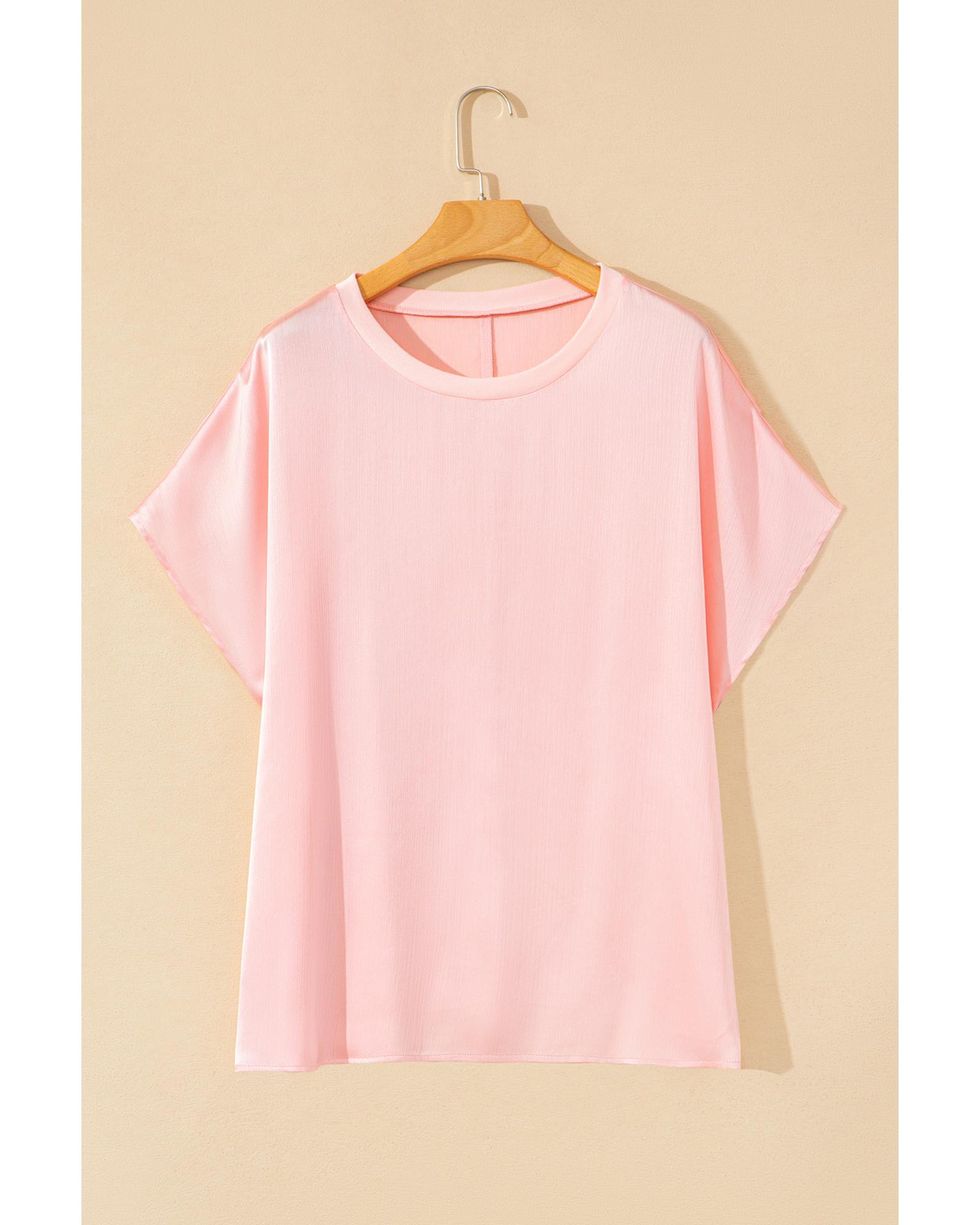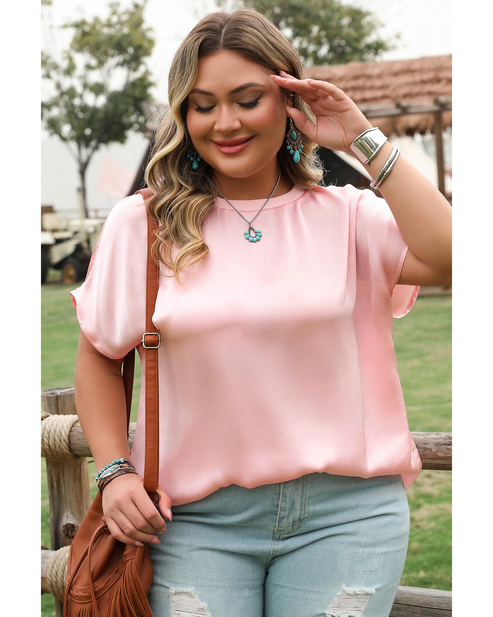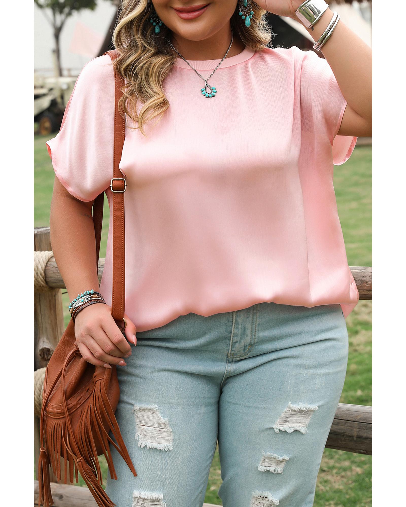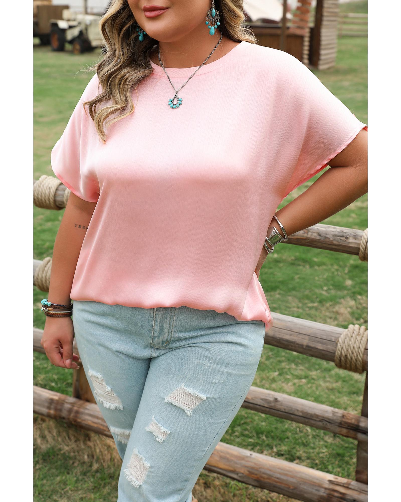 - Pink Metallic Gloss Short Batwing Sleeve Plus Size Top