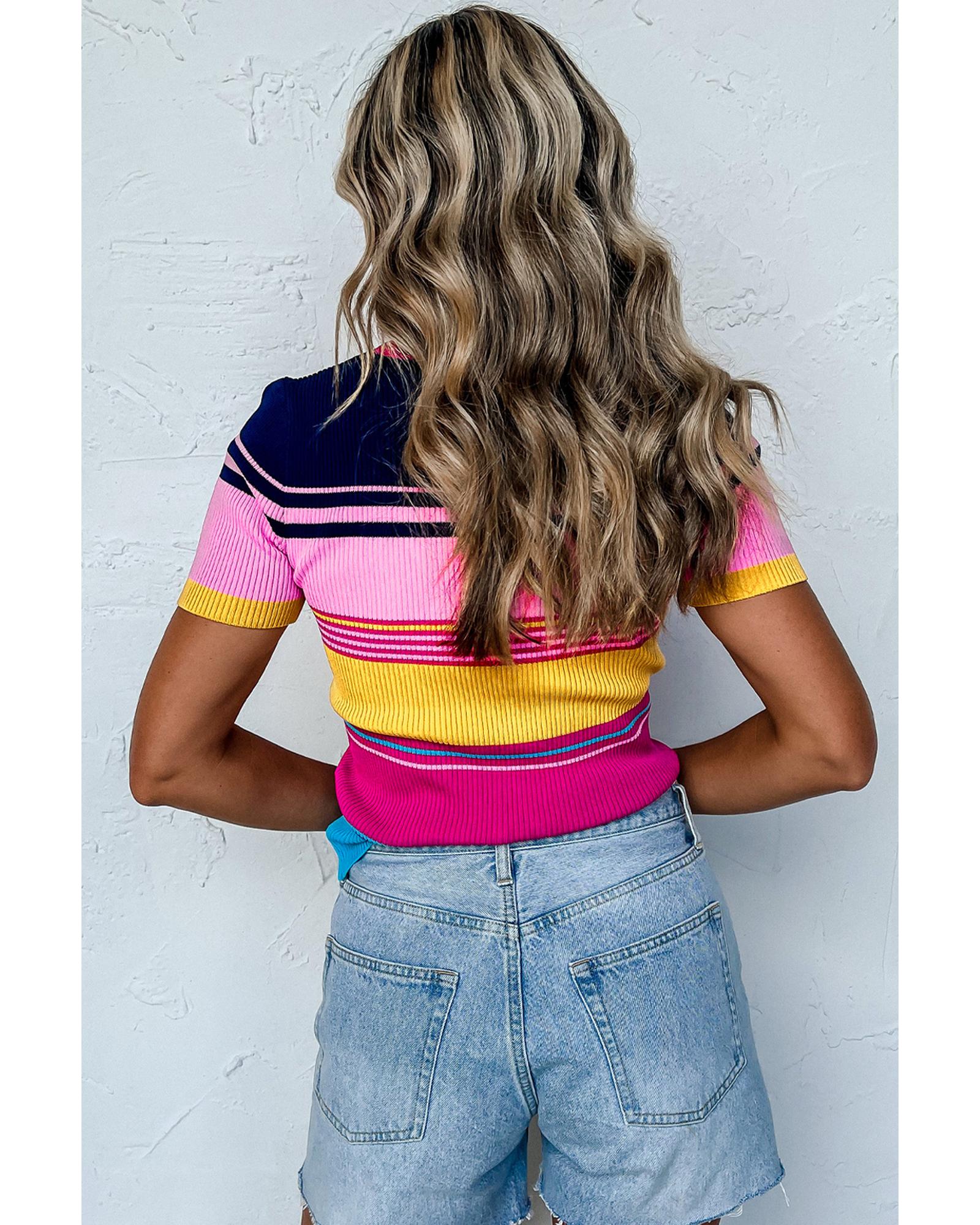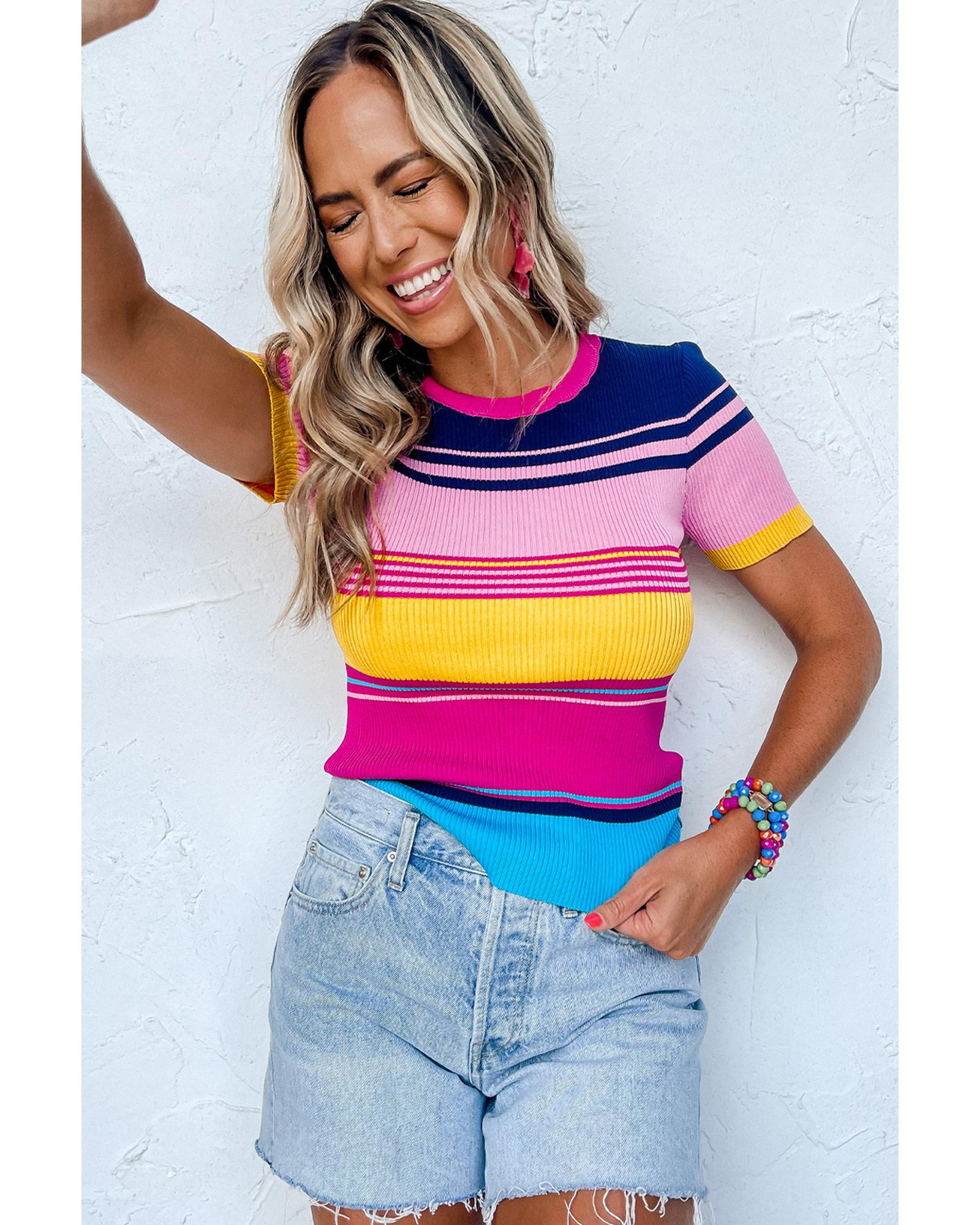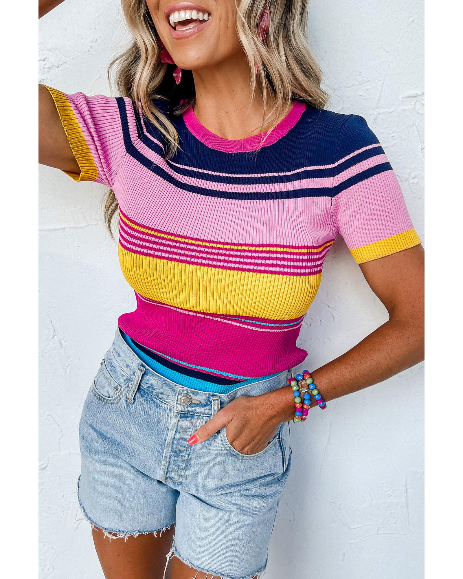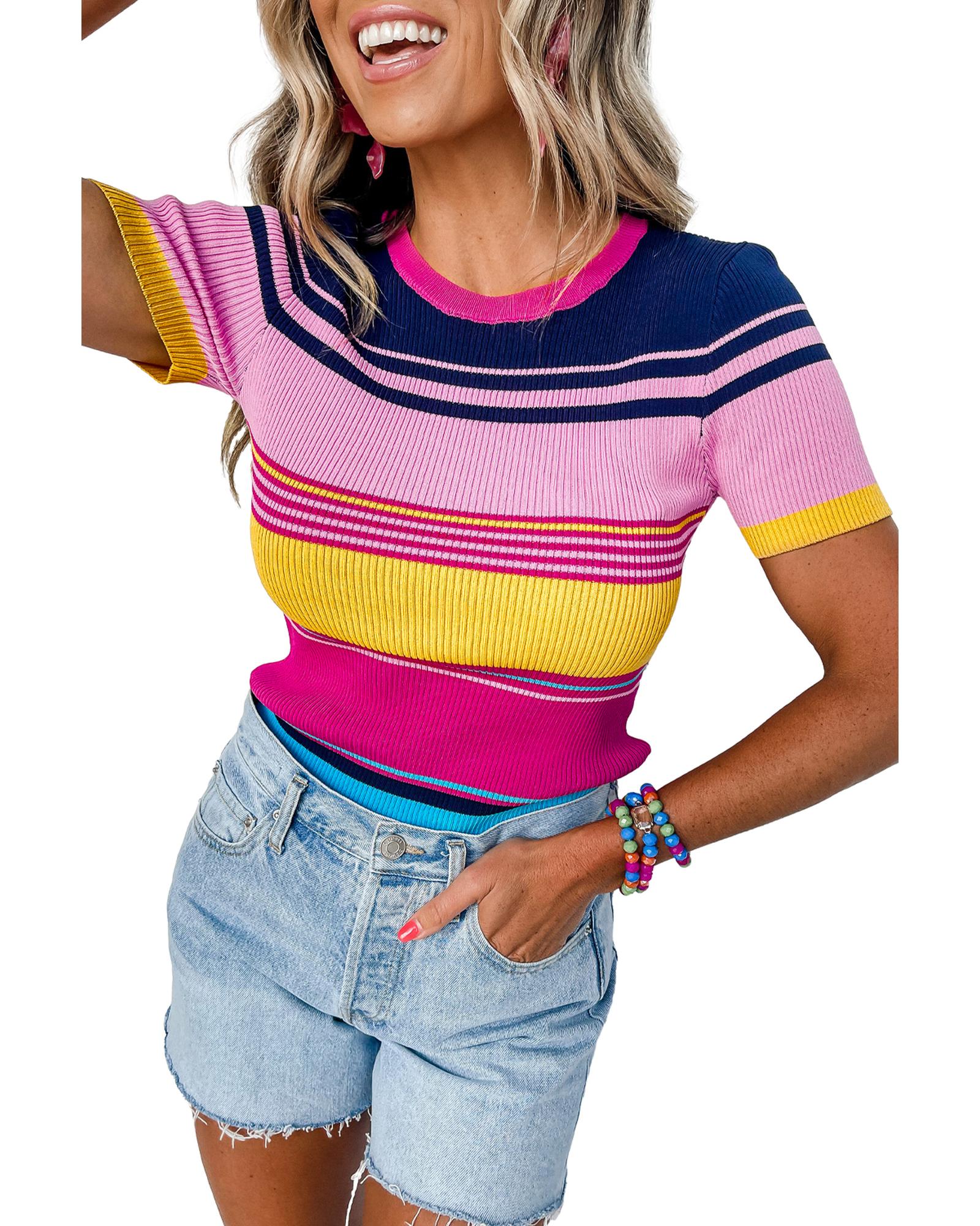 Pink Mixed Stripes Ribbed Knit Top – XL