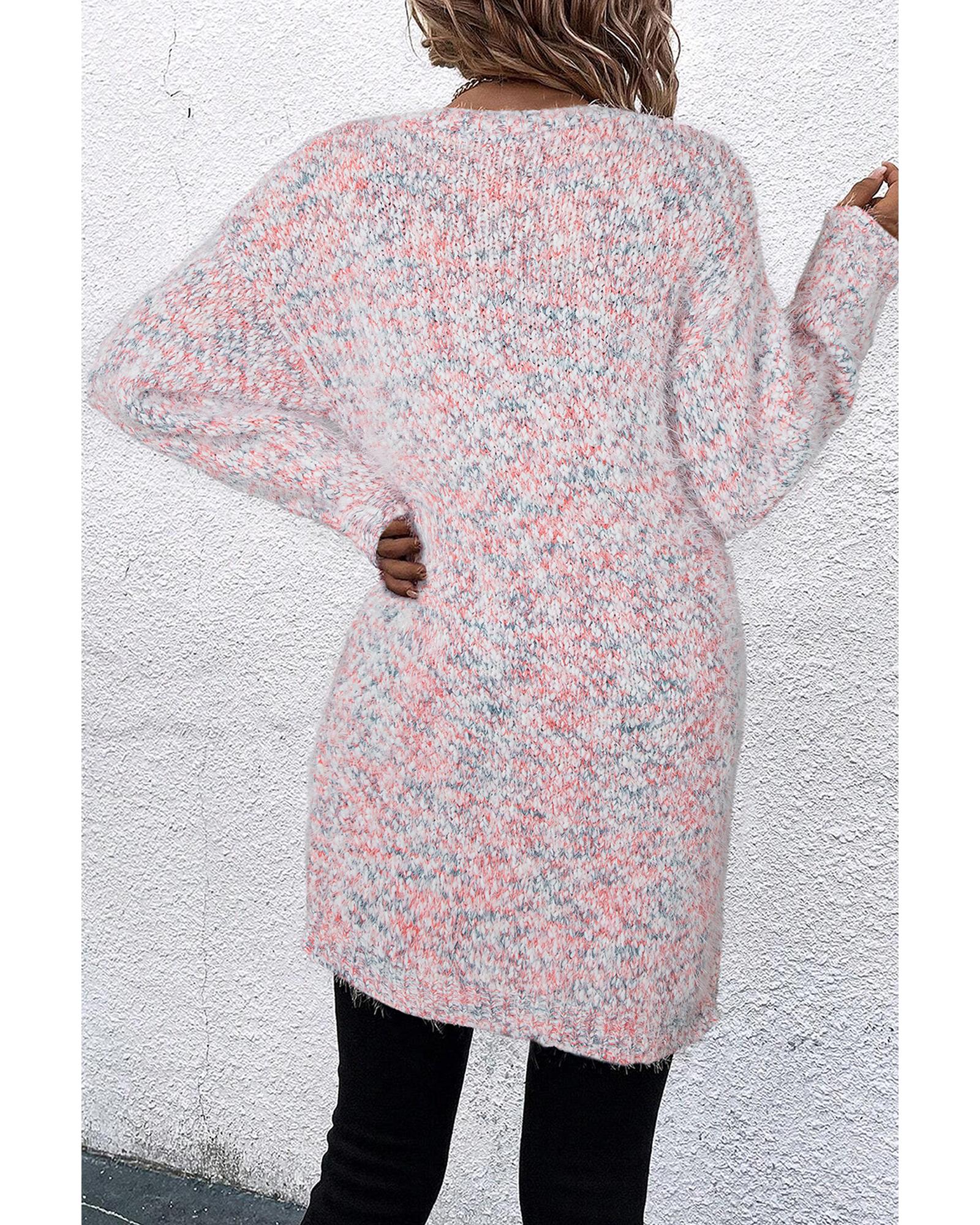 Pink Multicolor Confetti Open Front Knit Cardigan – M