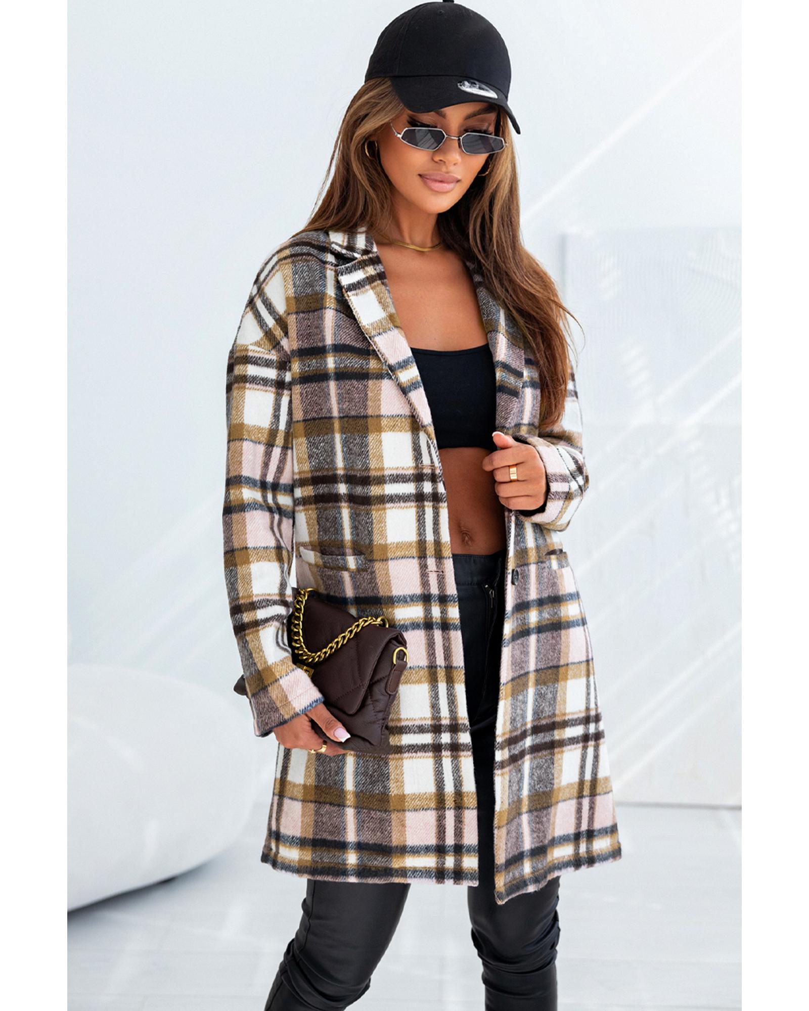Pink Plaid Button Up Lapel Jacket – XL