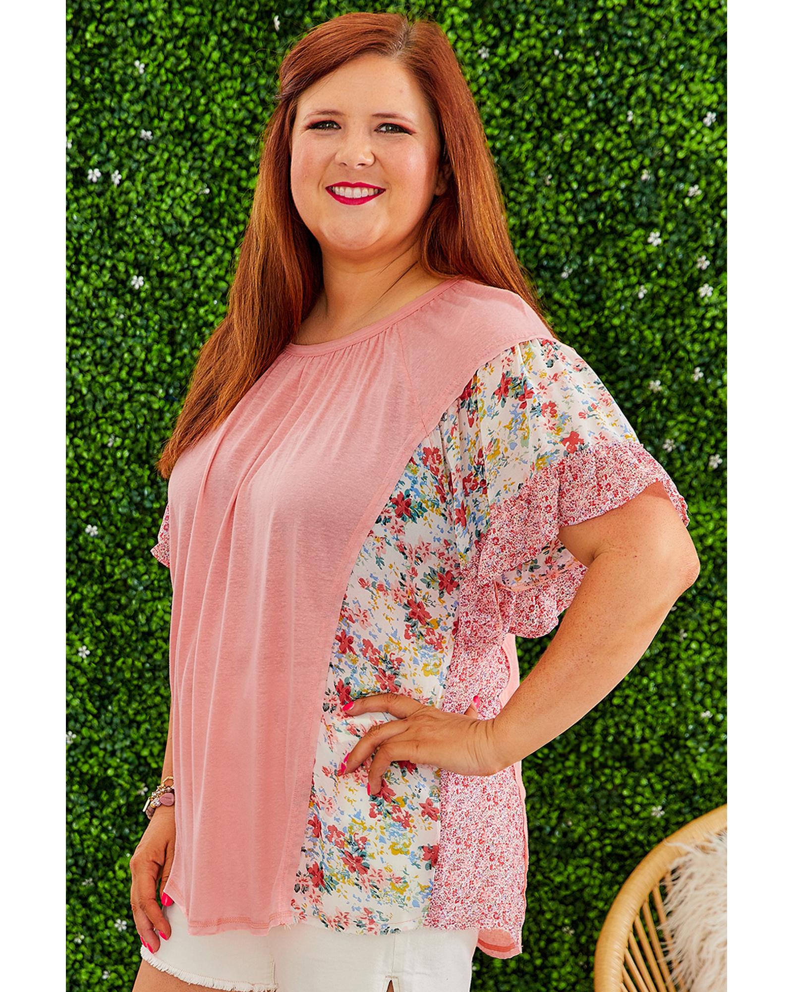 - Pink plus size floral patchwork blouse