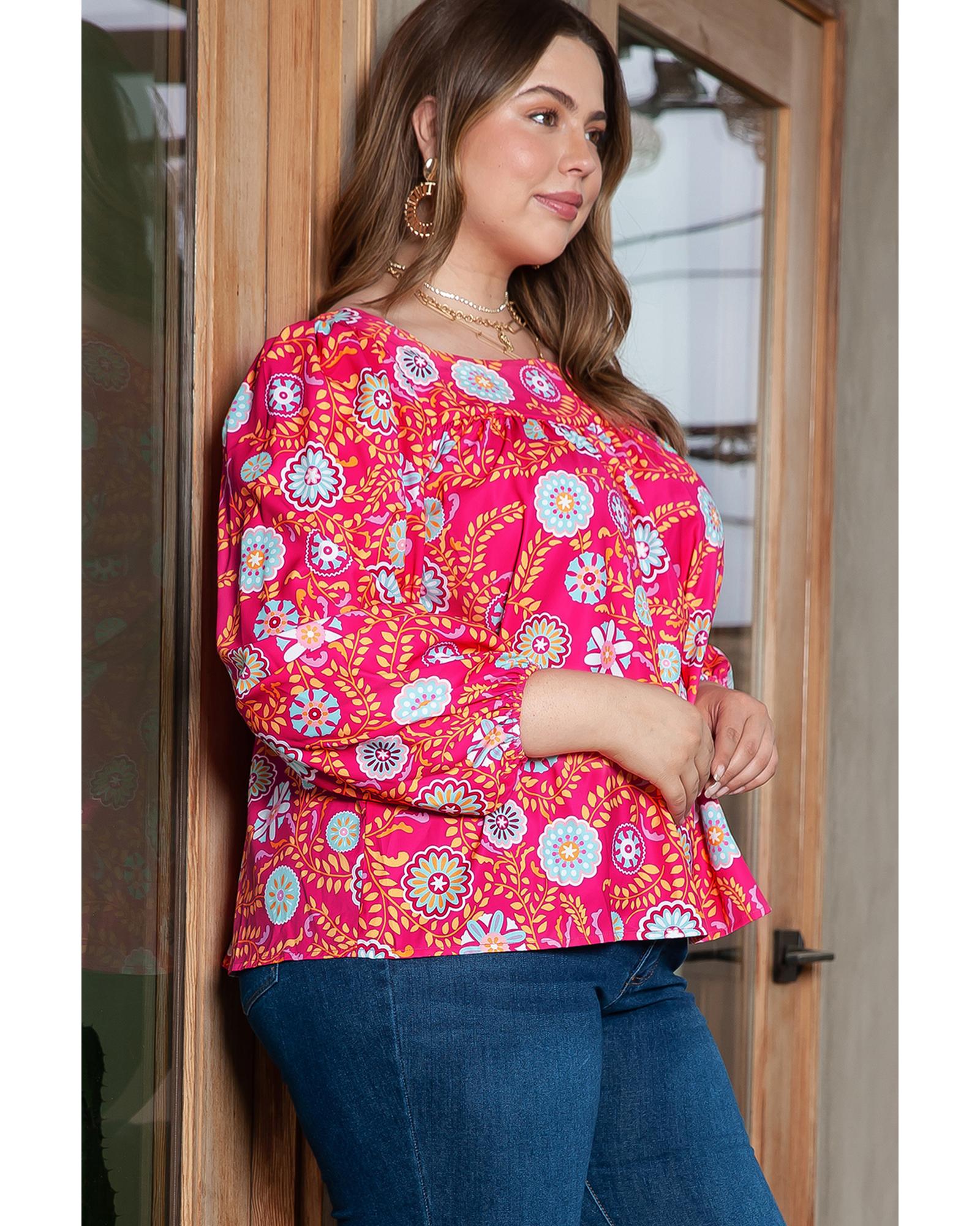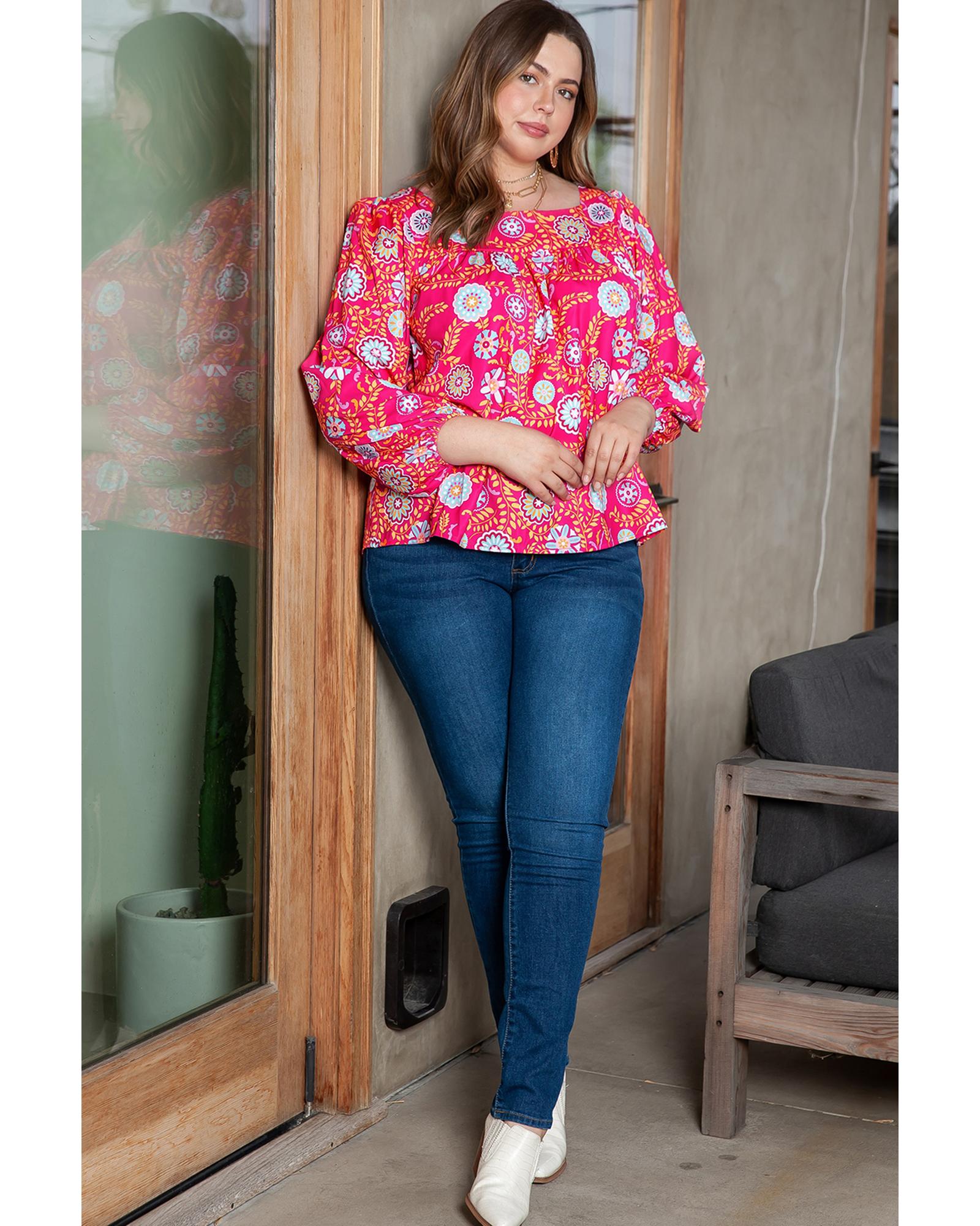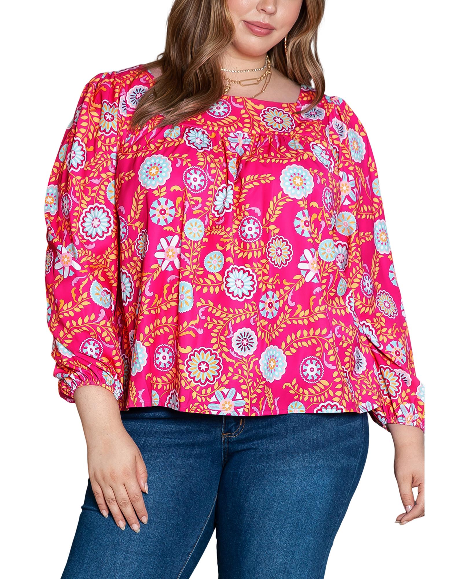 Pink Plus Size Square Neck Floral Blouse – 1X