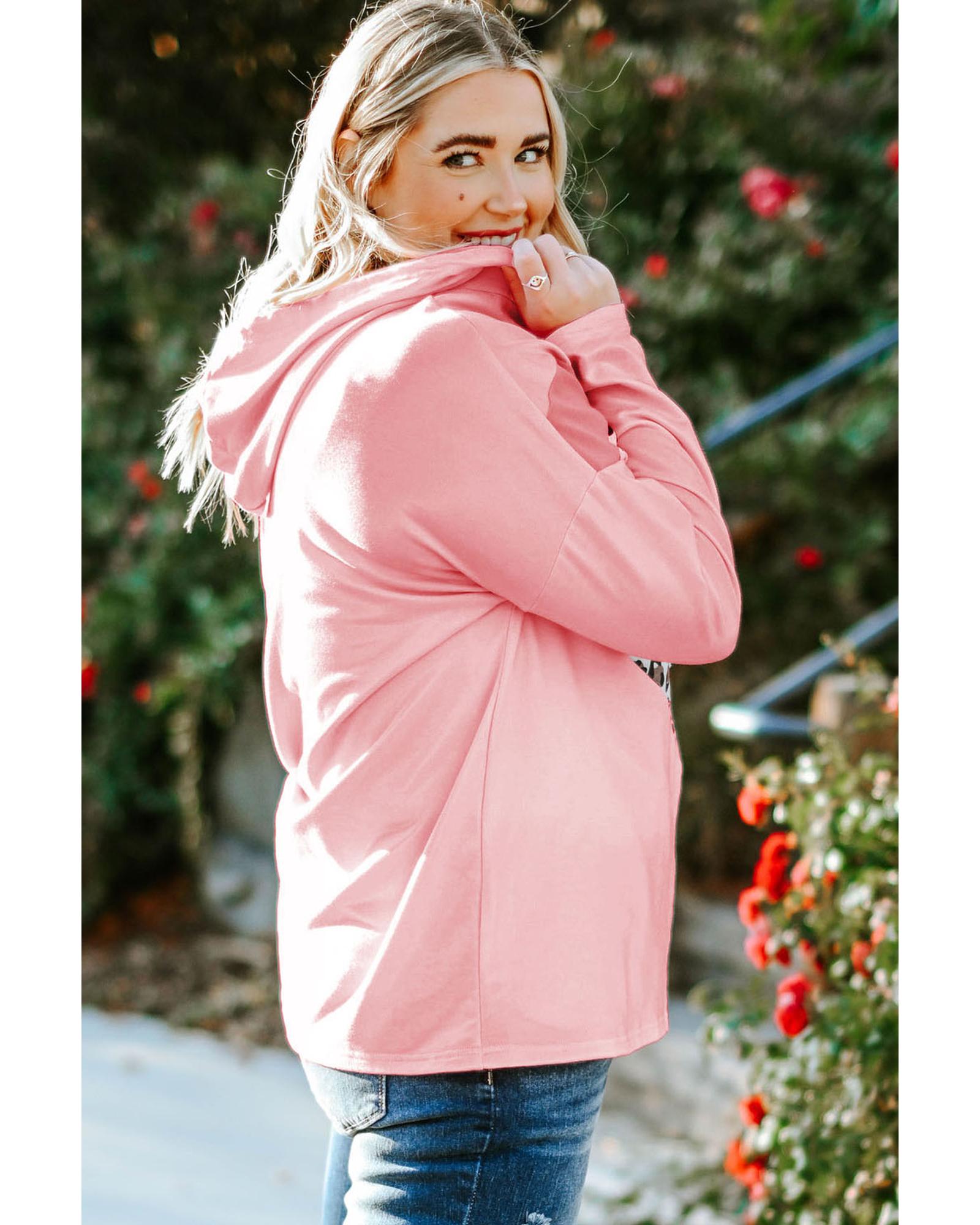 Pink Plus Size Taupe Chevron Hooded Top – 1X