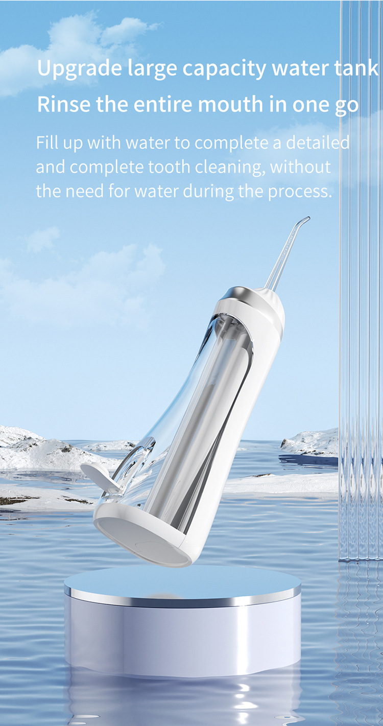 Elevate your oral hygiene with the Portable Ultrasonic Oral Irrigator, a smart teeth cleaning machine designed for deep and gentle cleaning. This device features three cleaning modes, a high-pressure pulse water column with 1600 pulses per minute, and an impressive 30-day battery life. Perfect for home use or travel, it includes multiple nozzles and a rotating nozzle for comprehensive dental care.