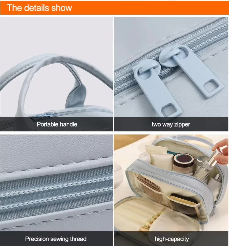Perfectly designed for both short trips and extended travel, this large-capacity cosmetic bag is your ideal organizing companion. Featuring a soft PU leather exterior, it provides a luxurious touch while ensuring durability and water resistance. The multiple compartments make organizing your essentials a breeze, and the sleek design adds a touch of elegance to your journey.