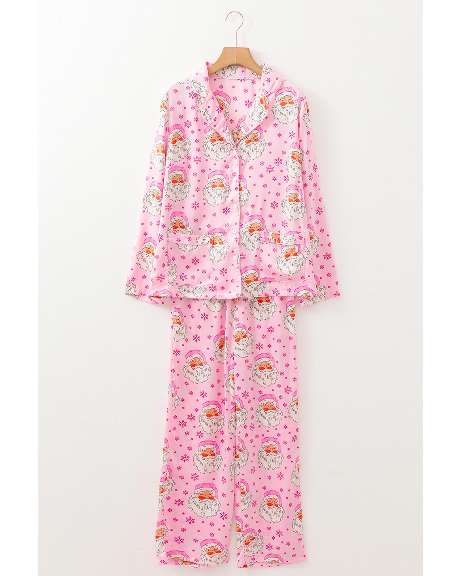 Pink Santa Claus Snowflake Long Sleeve Shirt Christmas Pajama Set – XL