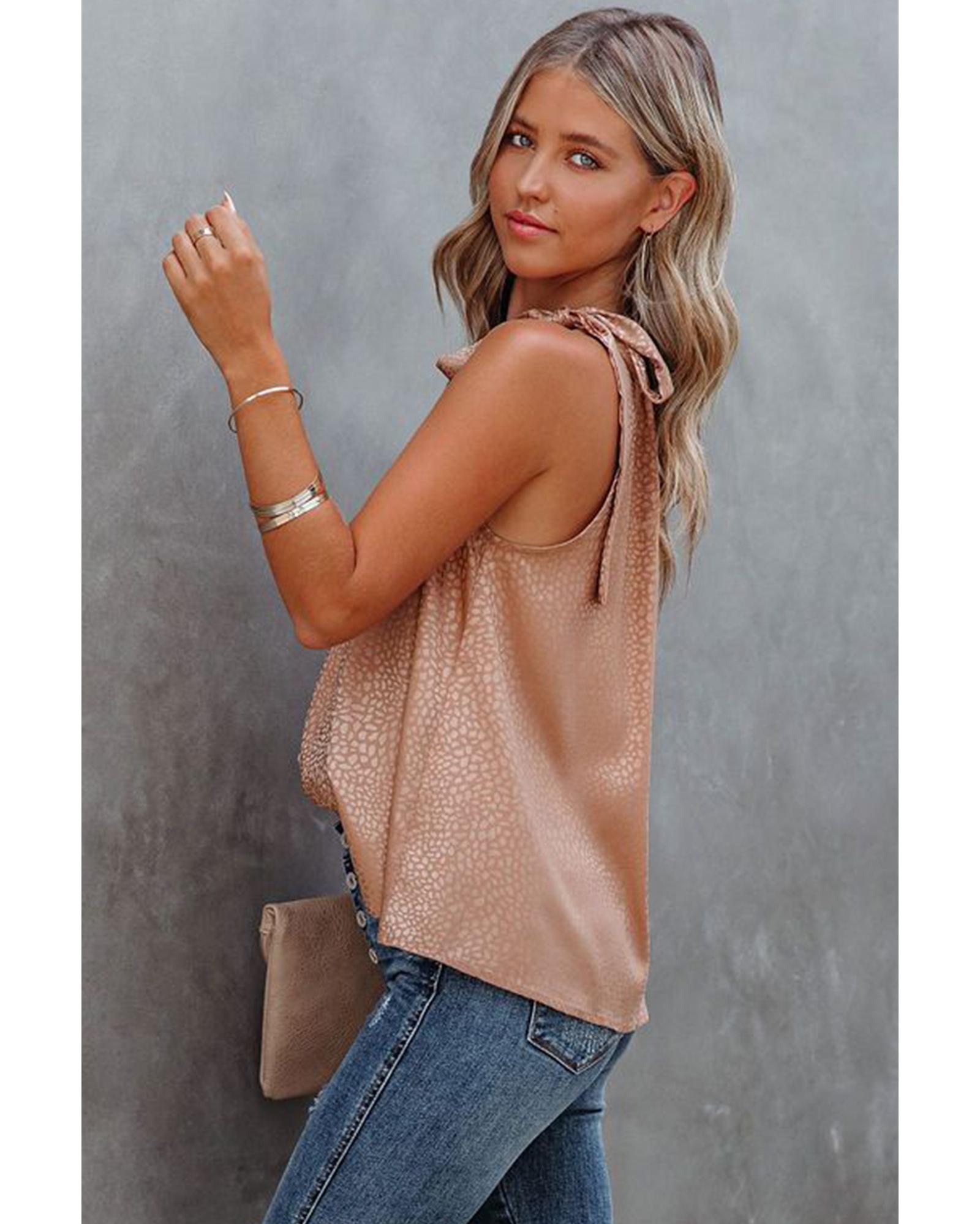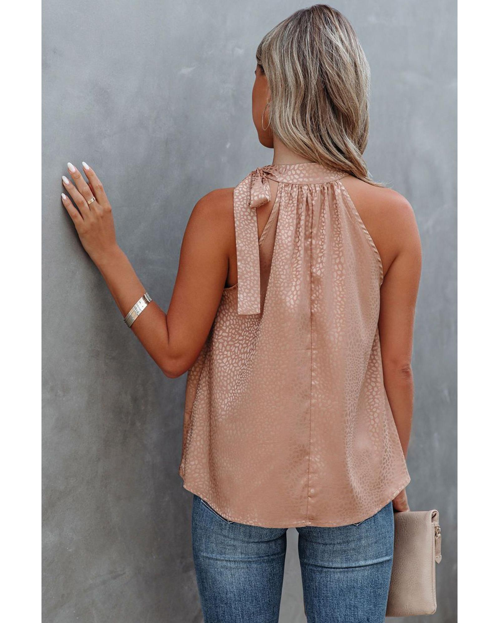 Pink Sleeveless Tie Mock Neck Leopard Tank Top – L