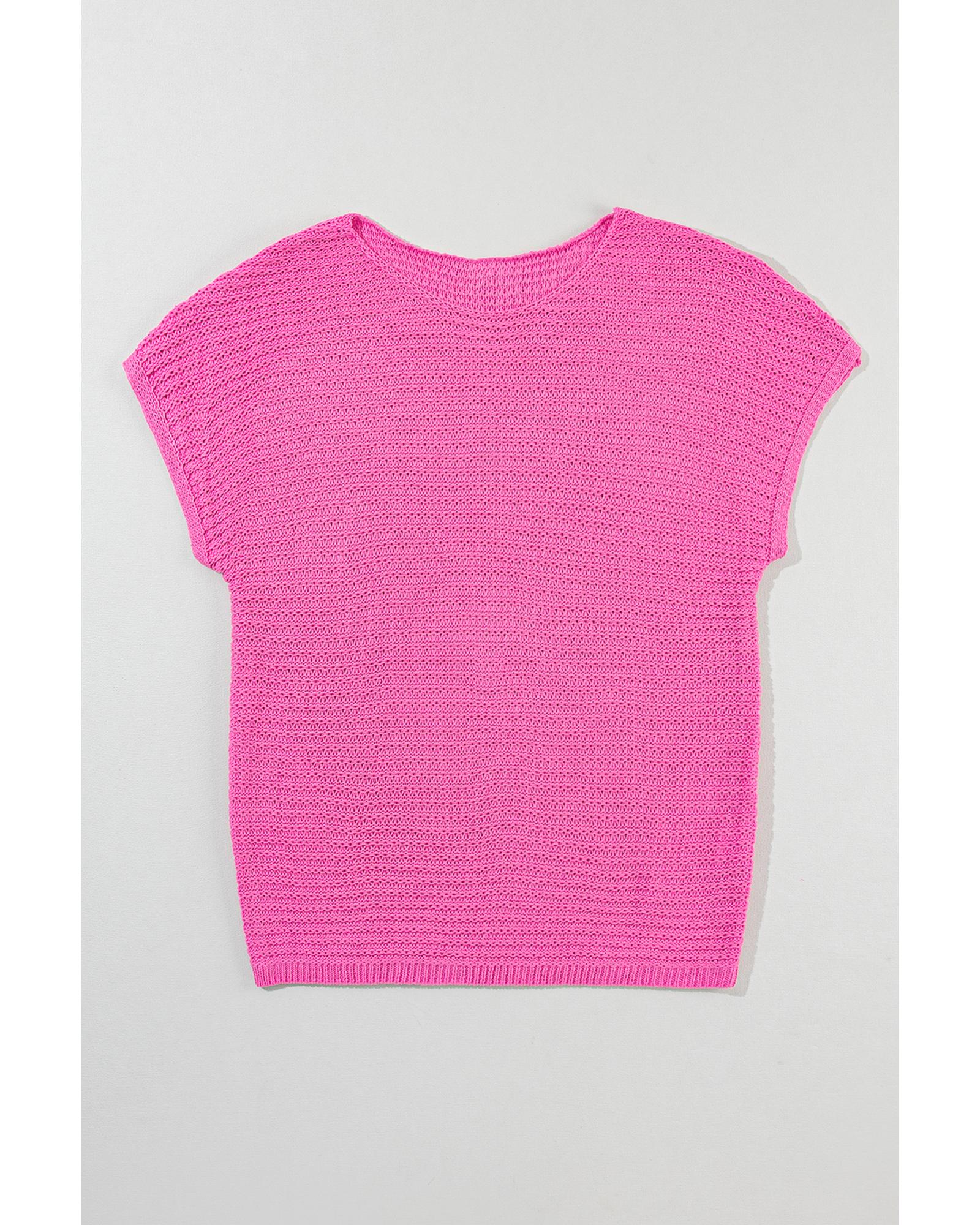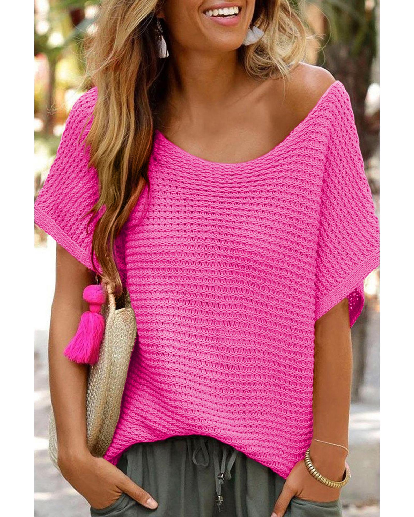 Pink Solid Loose Knit Short Dolman Sleeve Sweater – L