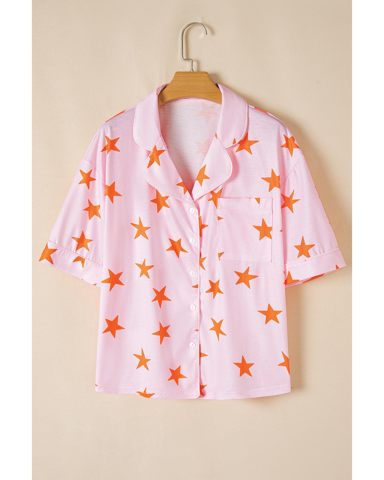 Pink Stars Short Sleeve Shirt and Shorts Bamboo Pajama Set – XL