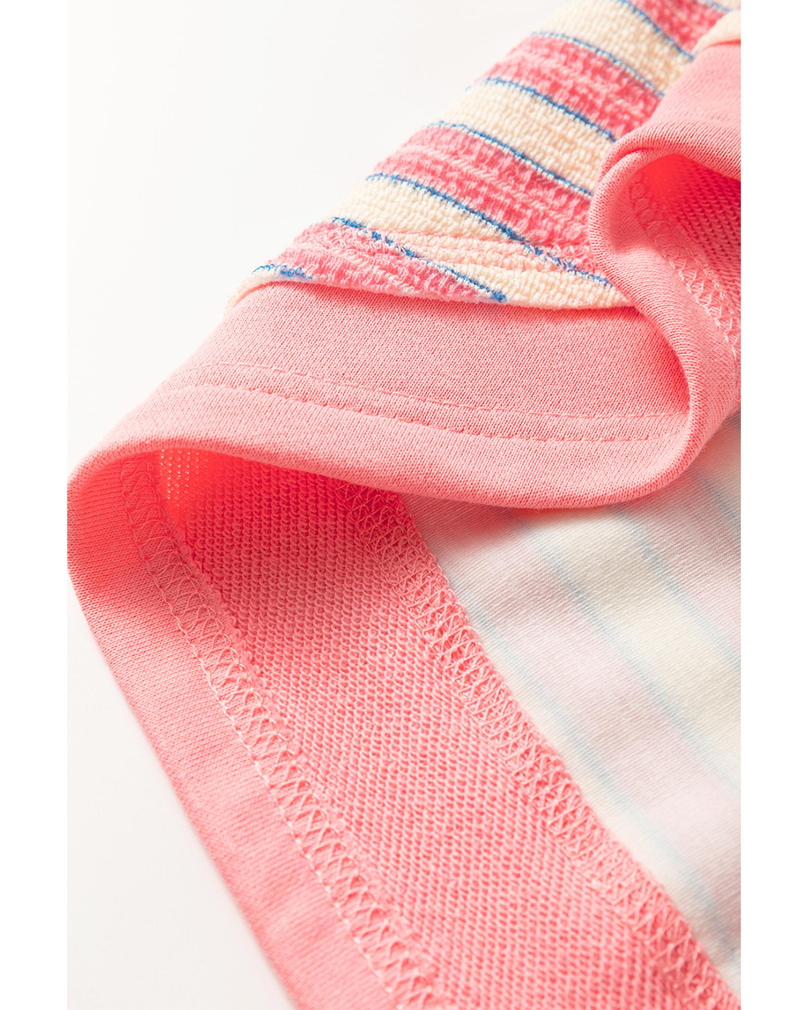 Rose Red Corded Colorblock Patchwork Drop Shoulder Long Sleeve Top - S