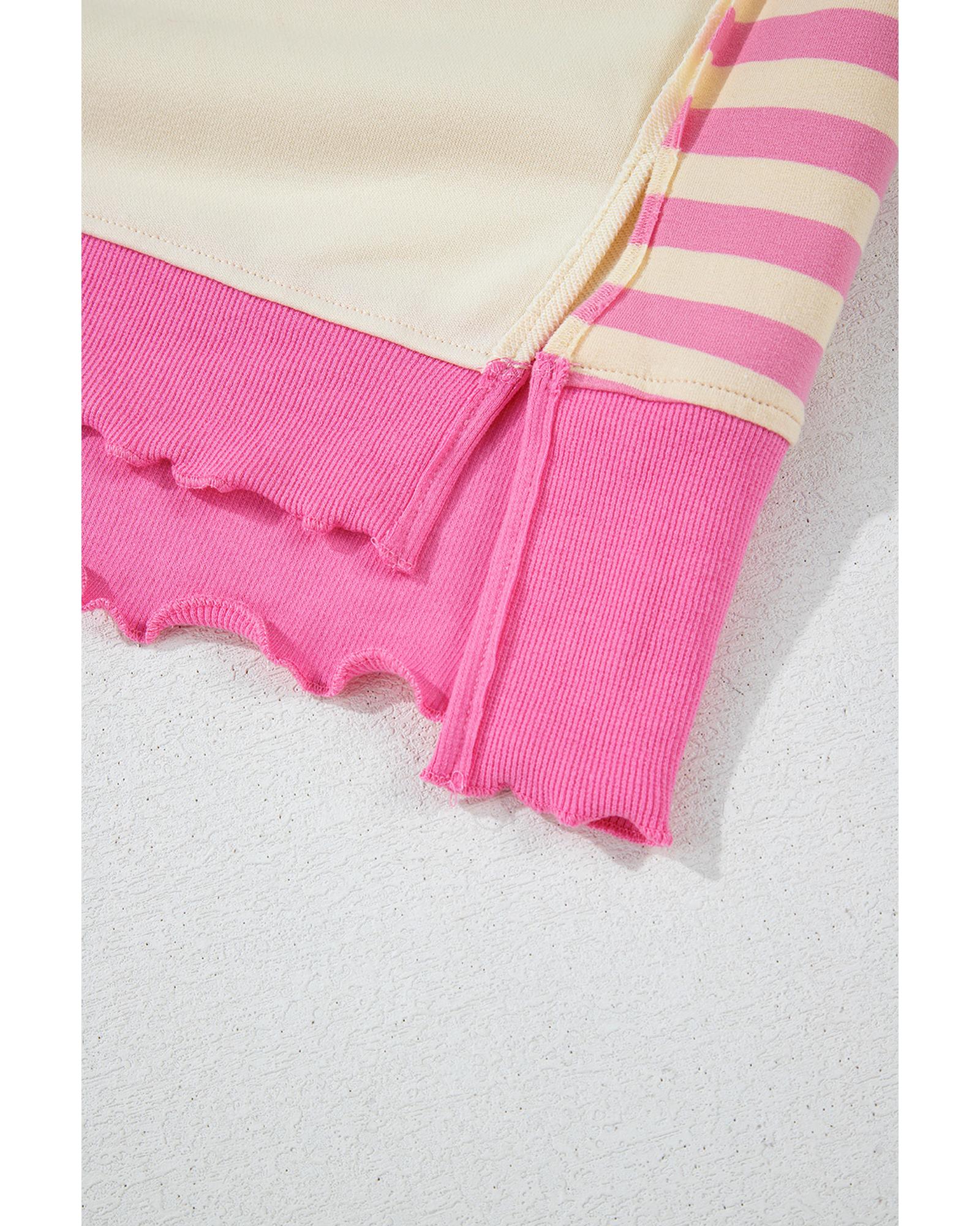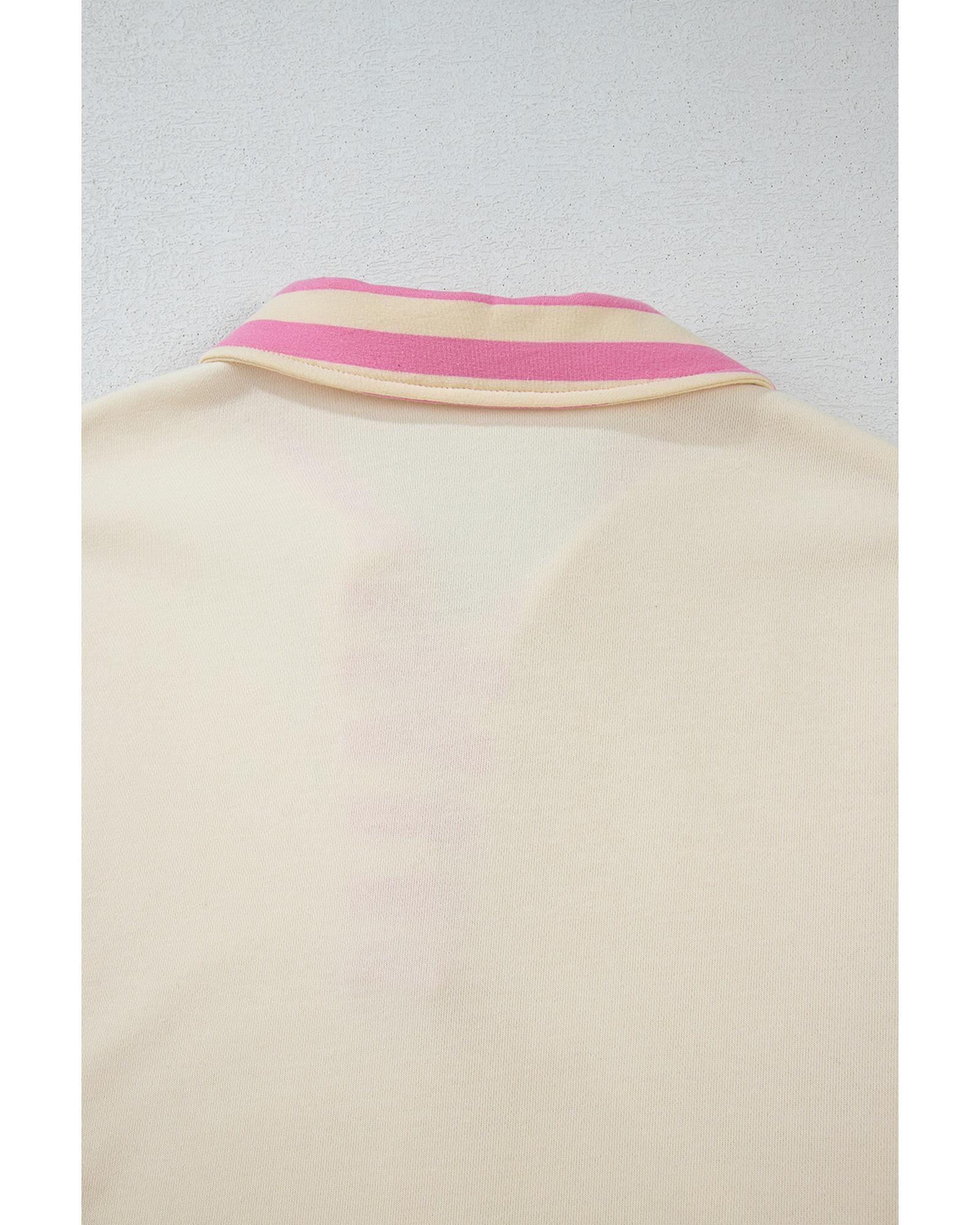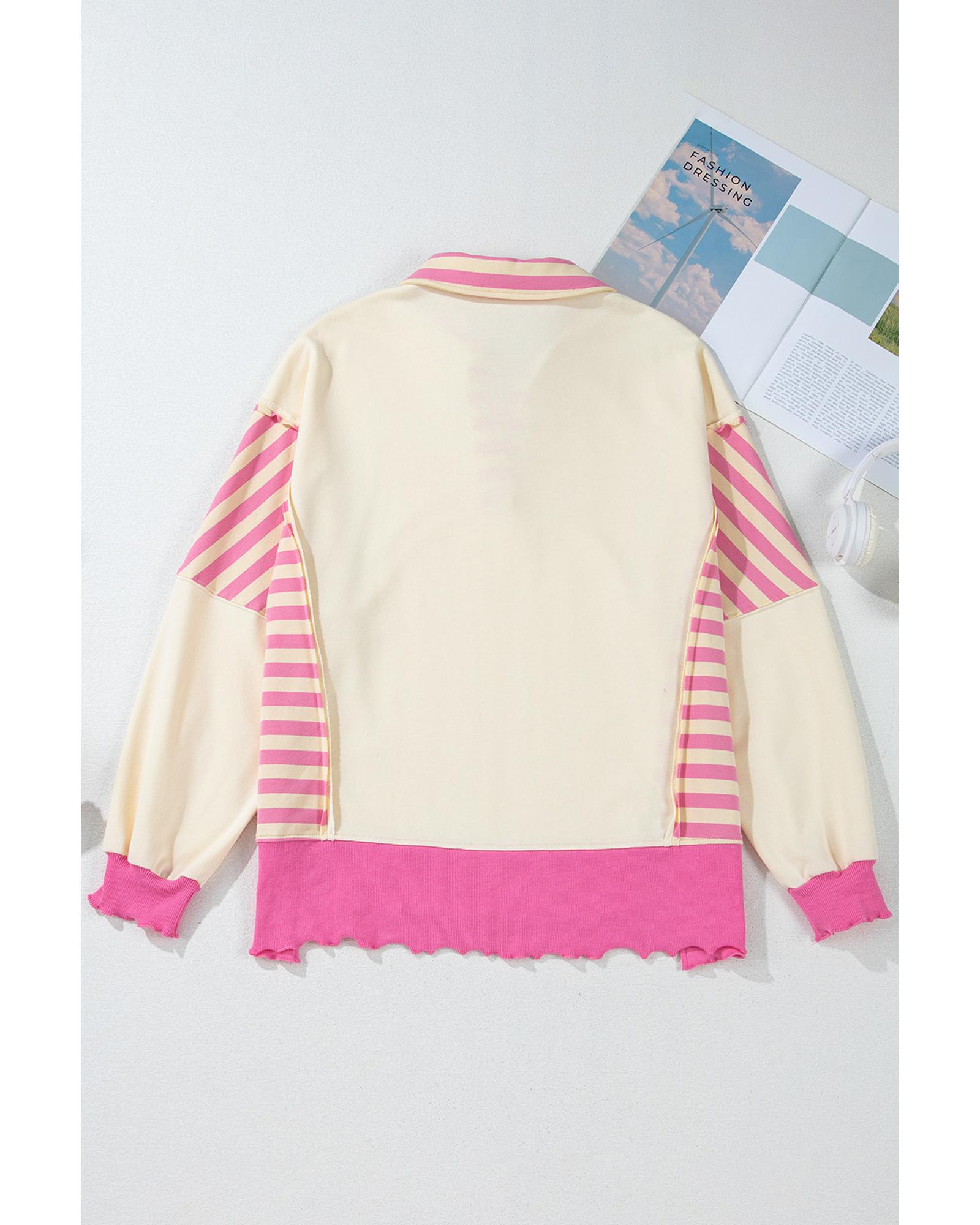 Pink Stripe Colorblock Patchwork Collared French Terry Knit Top – M