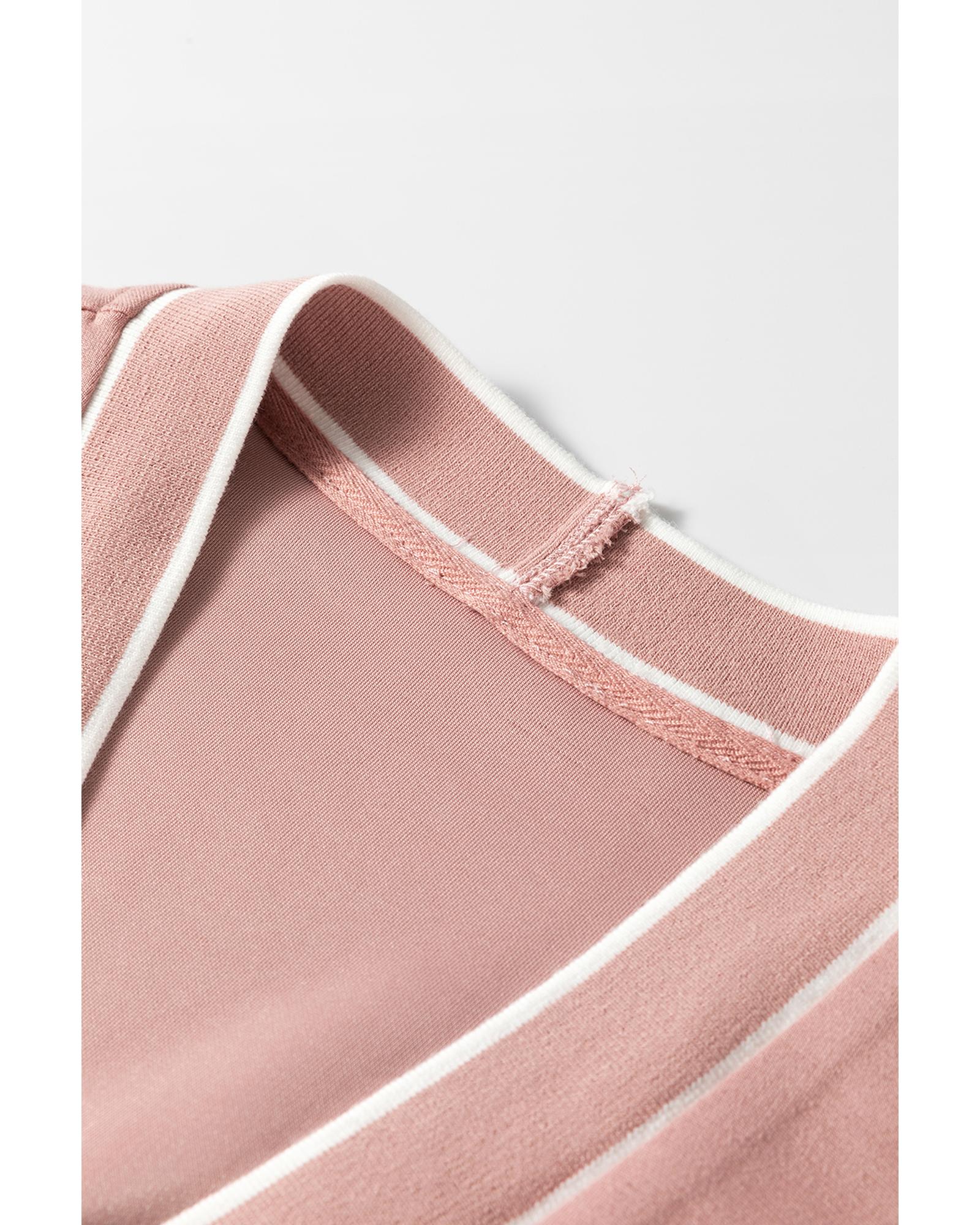 Pink Stripe Contrast Trim V Neck Buttoned Front Pocketed Knit Cardigan – L