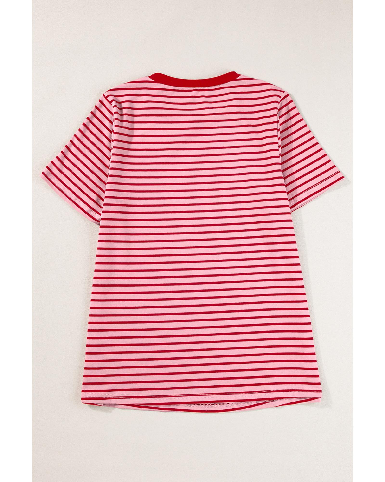 Pink Stripe Crew Neck Casual T Shirt – L