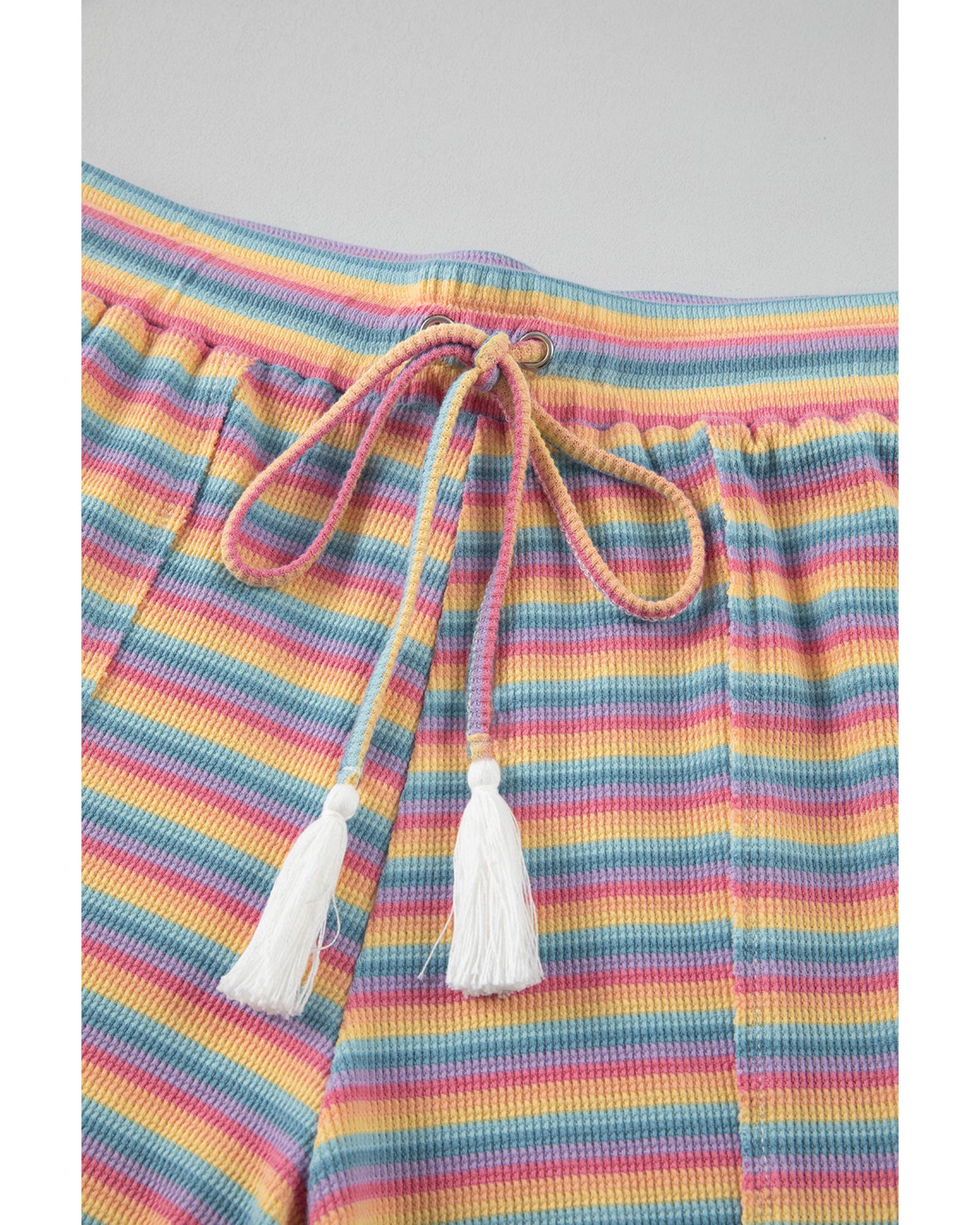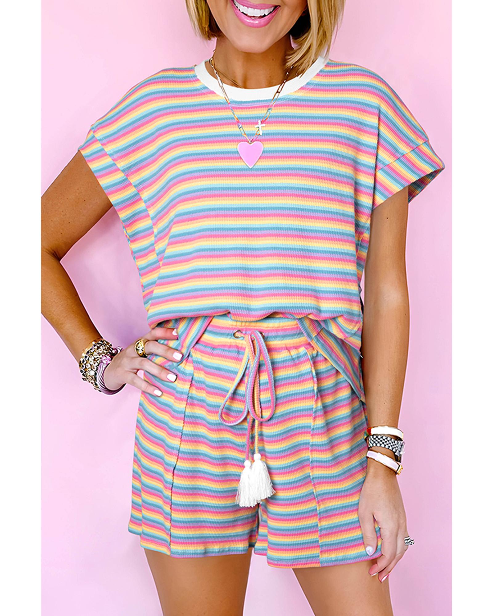 Pink Stripe Crew Neck Tee and Tasseled Drawstring Shorts Set – XL