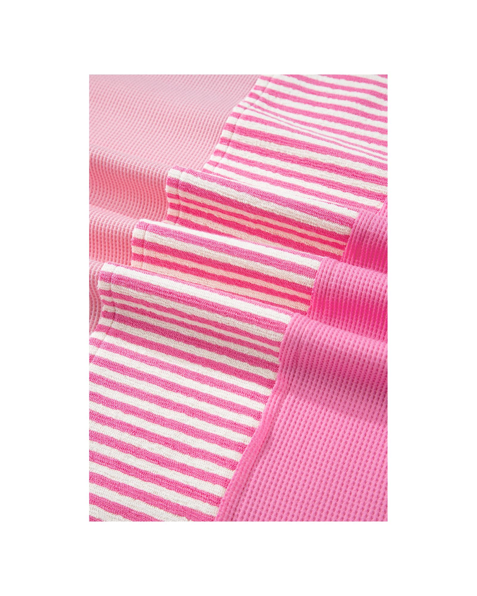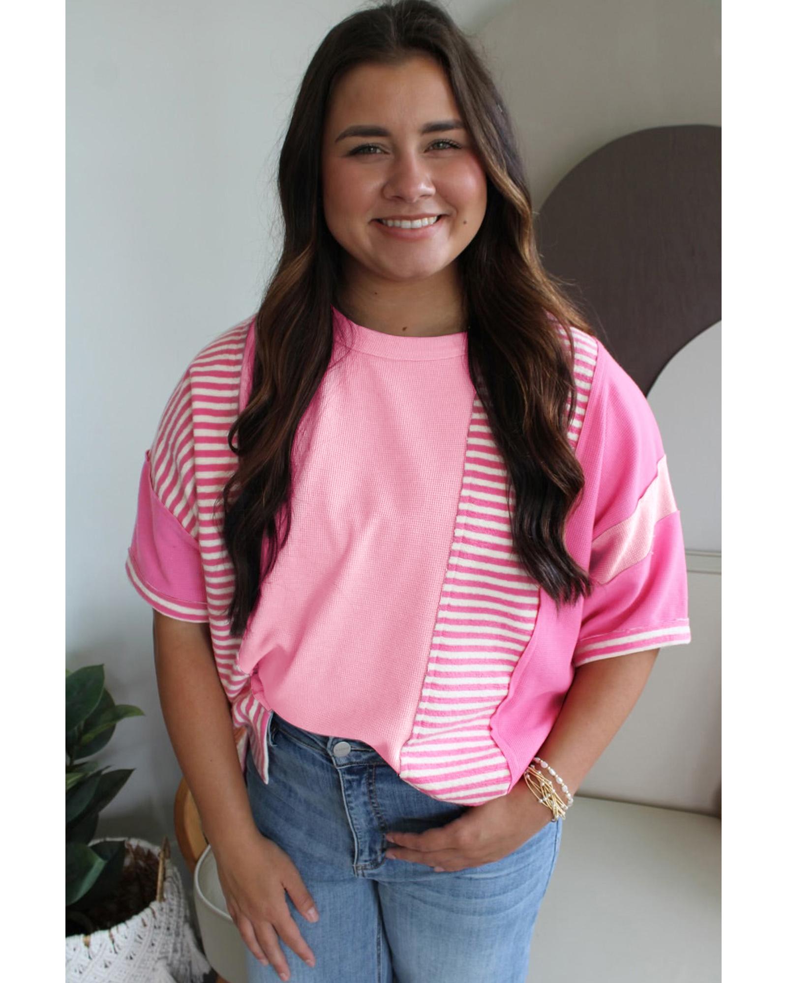 Pink Stripe Patchwork Colorblock Plus Size T Shirt – 4X