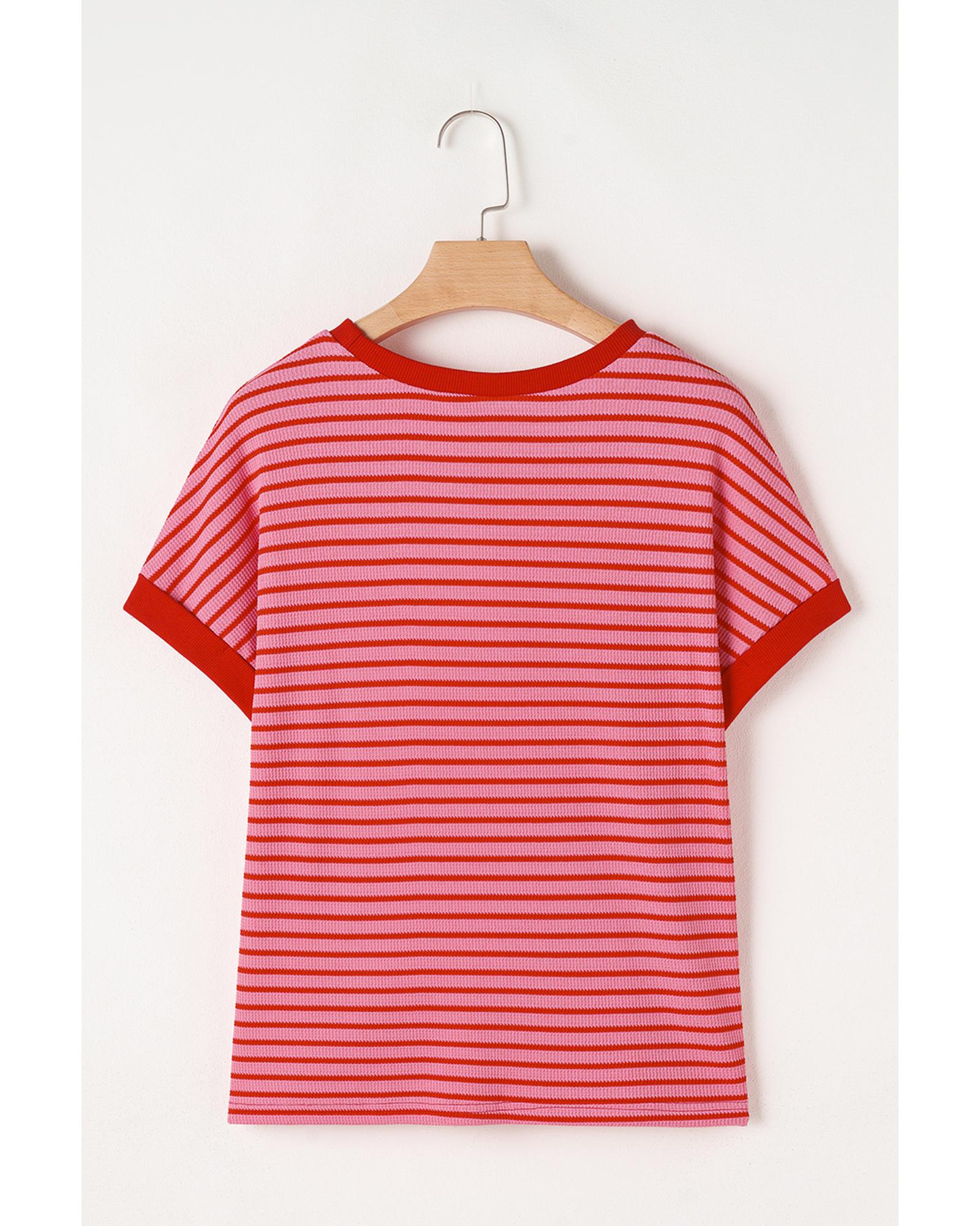 Pink Stripe Sequin Crawfish Crewneck T Shirt – S