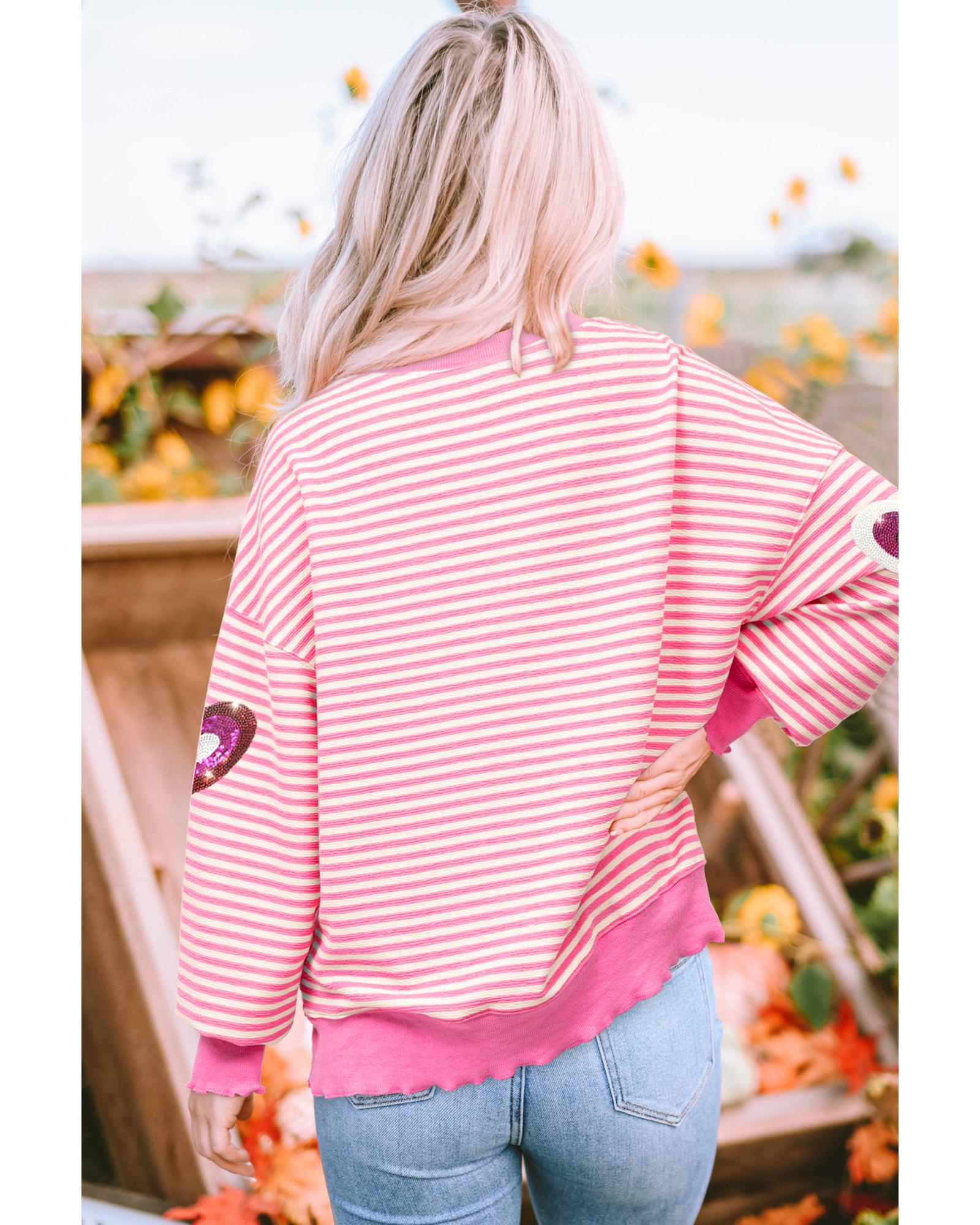 - Pink Stripe Sequin Heart Patched Pattern Long Sleeve Valentines Top