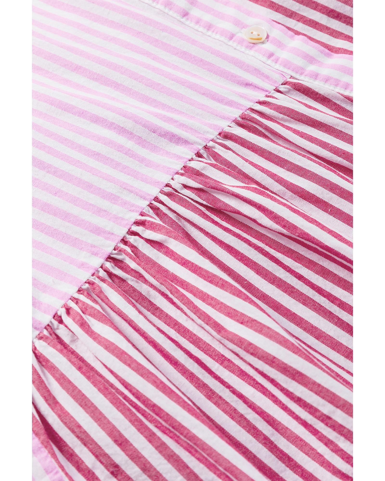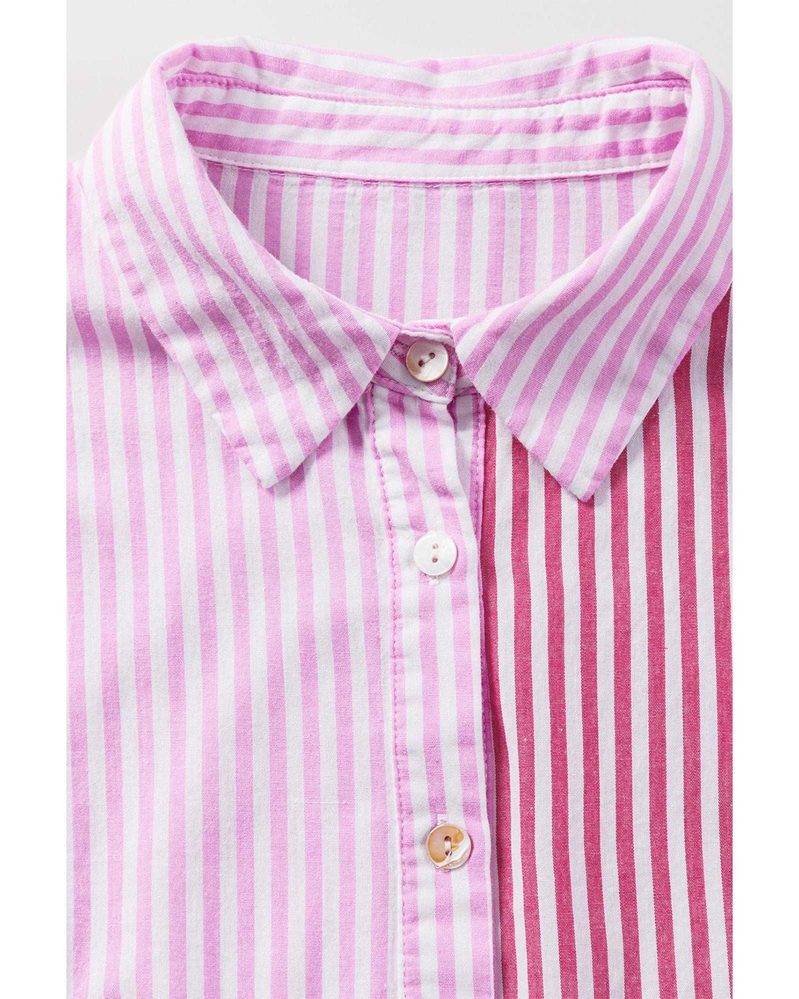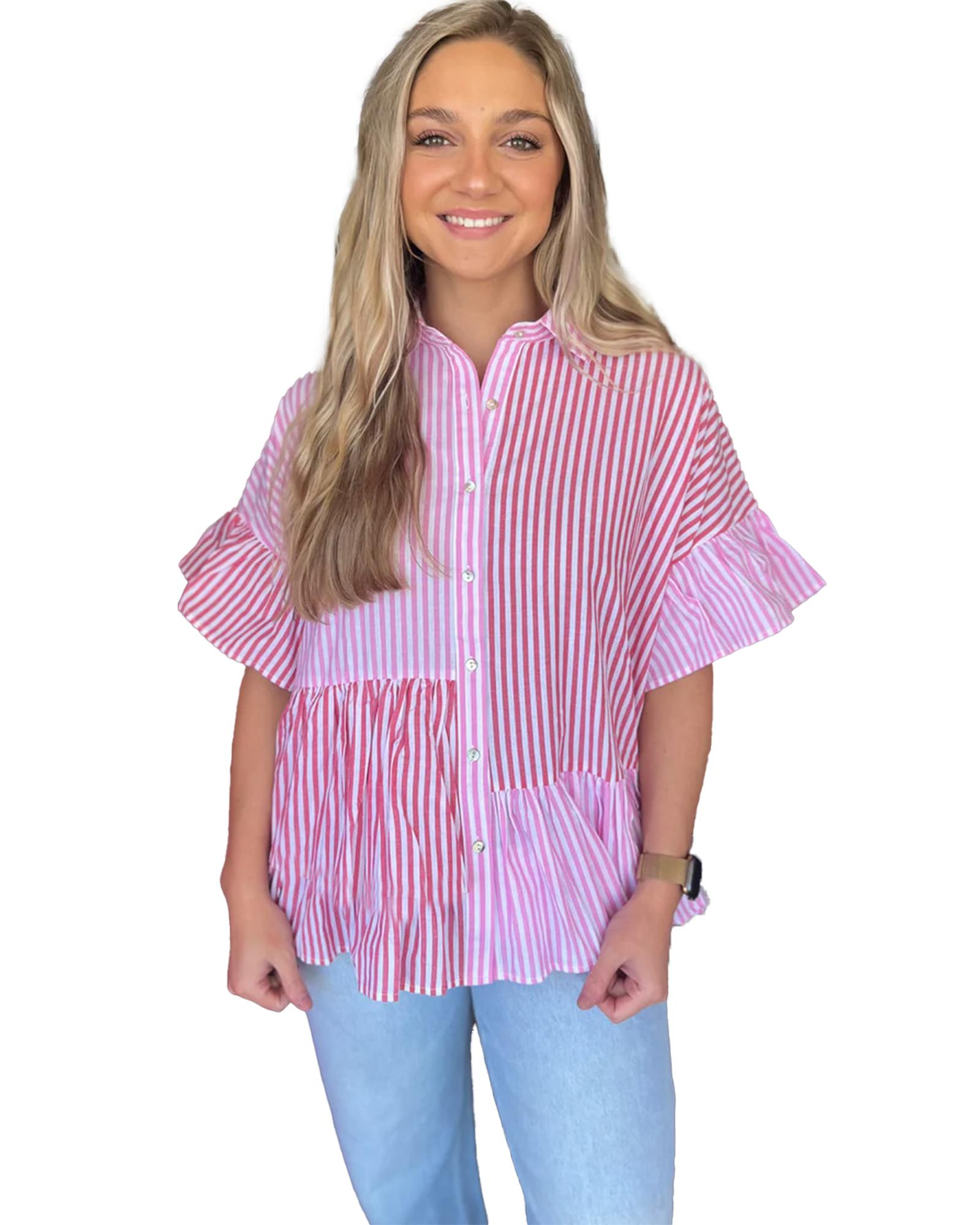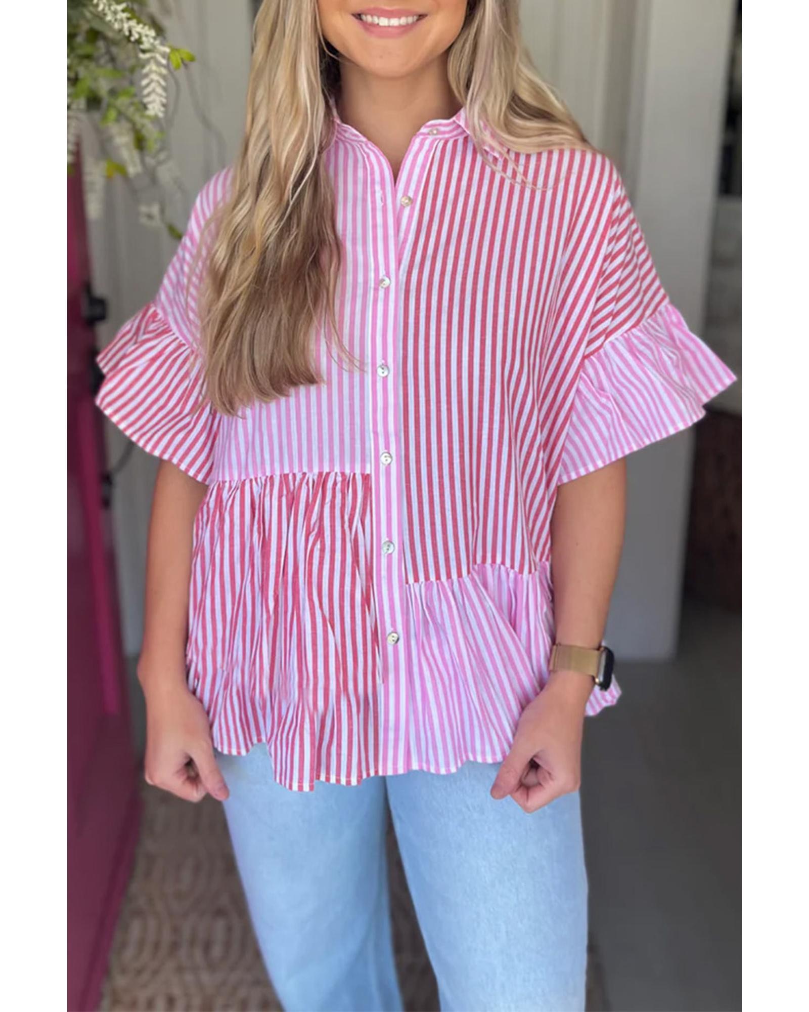 Pink Stripe Striped Patchwork Ruffled Hem Button up Shirt – L