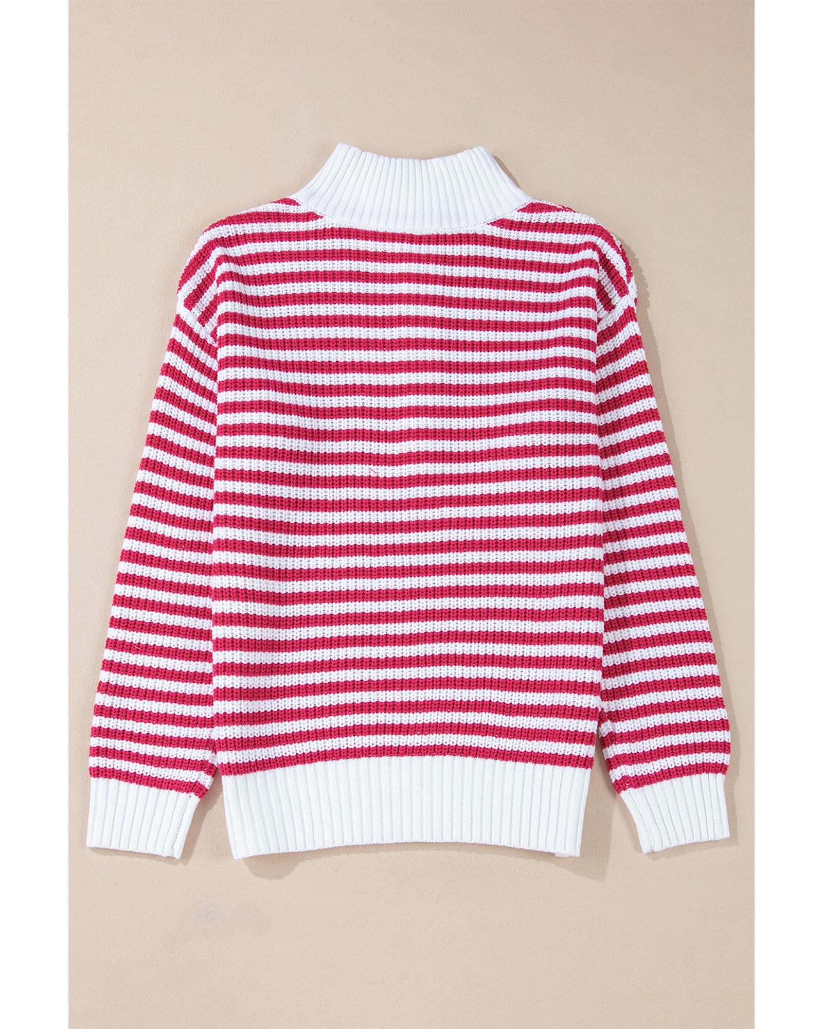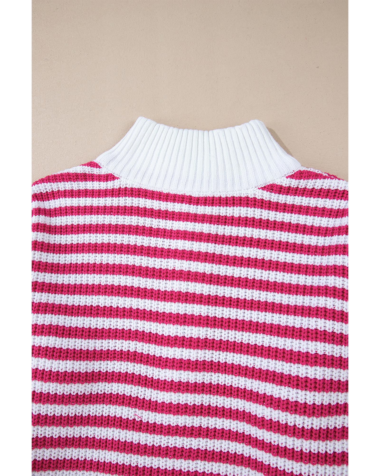 Pink Stripe Zip up Collar Drop Shoulder Sweater – XL