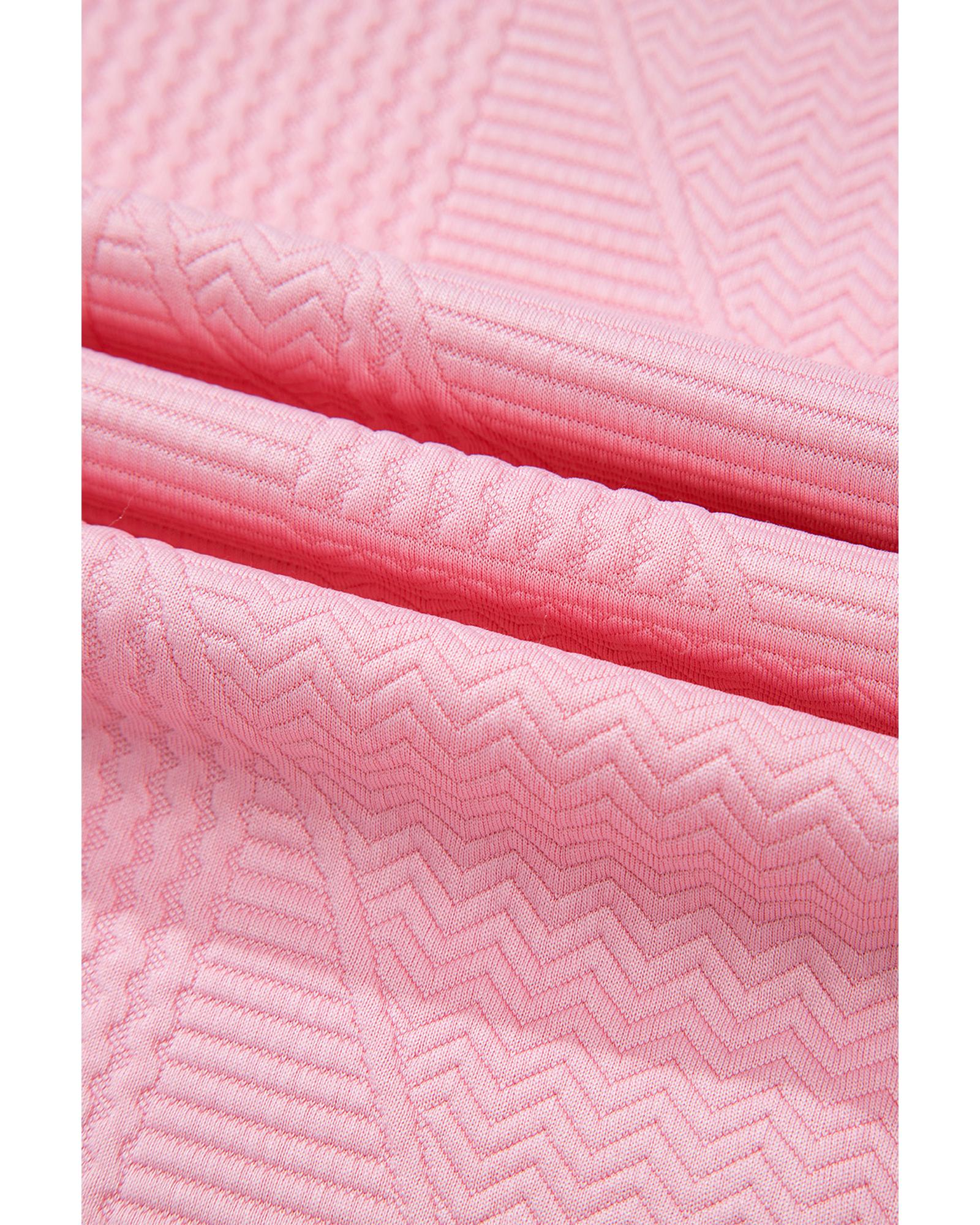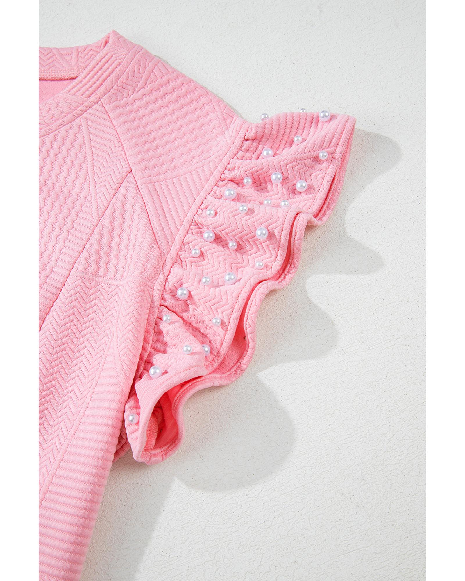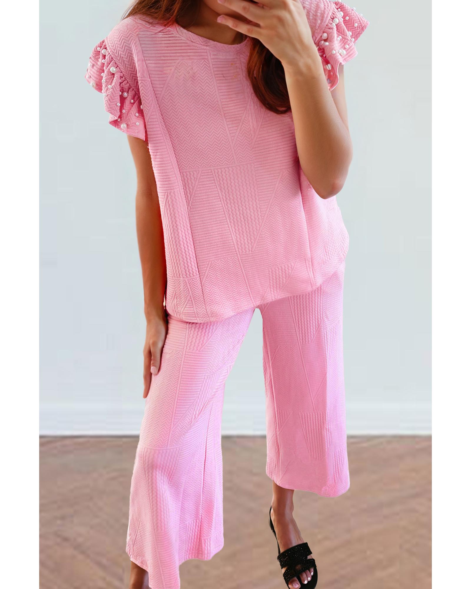 Pink Textured Pearled Ruffled Sleeve Wide Leg Pants Set – L