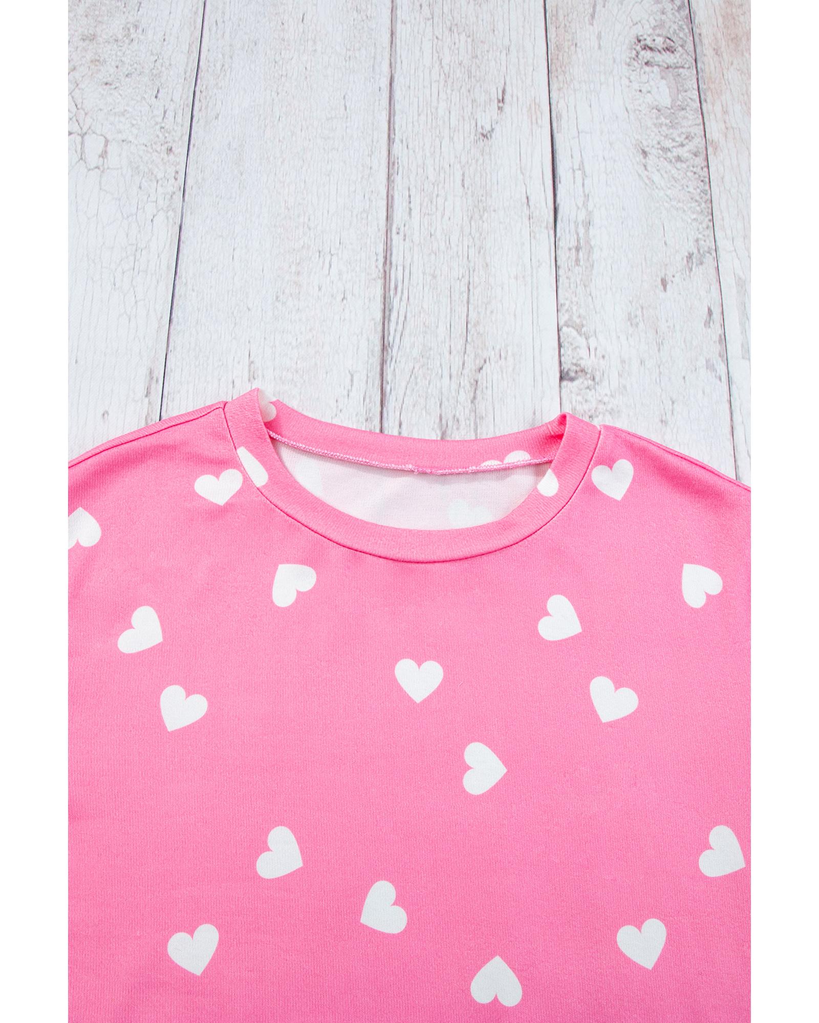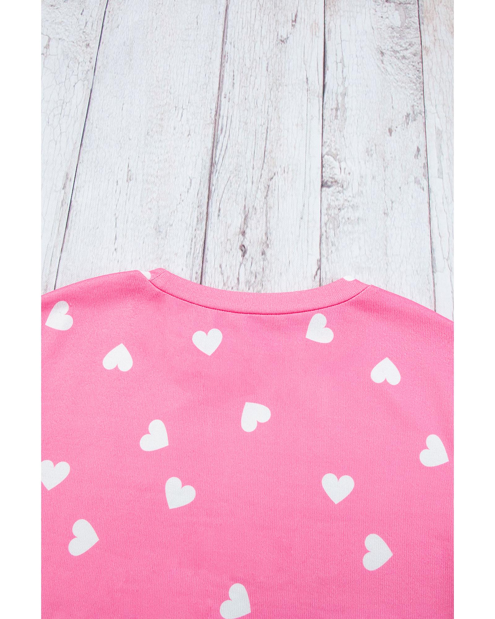 • Pink Valentine Heart Print Long Sleeve Tee and Shorts Lounge Set
