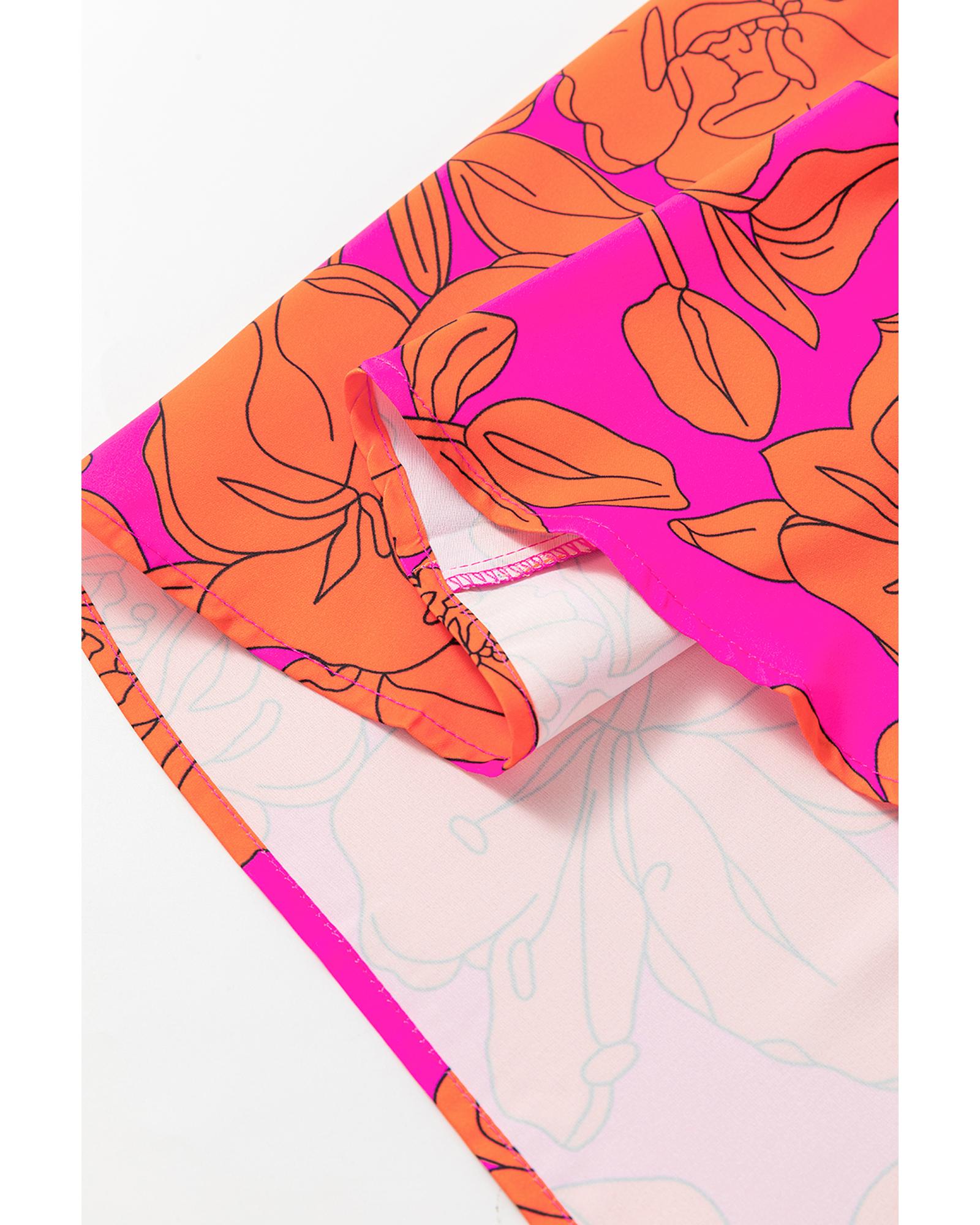 Orange Floral Print Split V Neck Tiered Maxi Dress - M