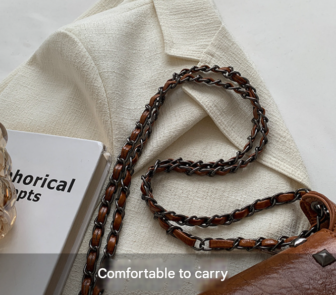 Add a touch of vintage flair to your wardrobe with this women’s retro studded envelope shoulder bag. Featuring a sleek design with eye-catching studded embellishments, this bag combines style and functionality. The detachable chain strap allows you to switch between a shoulder bag and a crossbody, making it perfect for daily outings or special occasions.