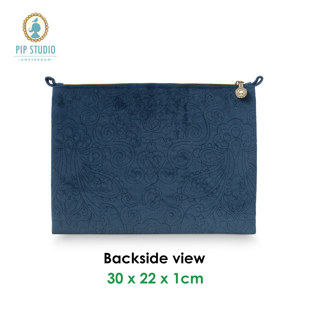 PIP Studio Velvet Quilted Dark Blue Large Cosmetic Flat Pouch