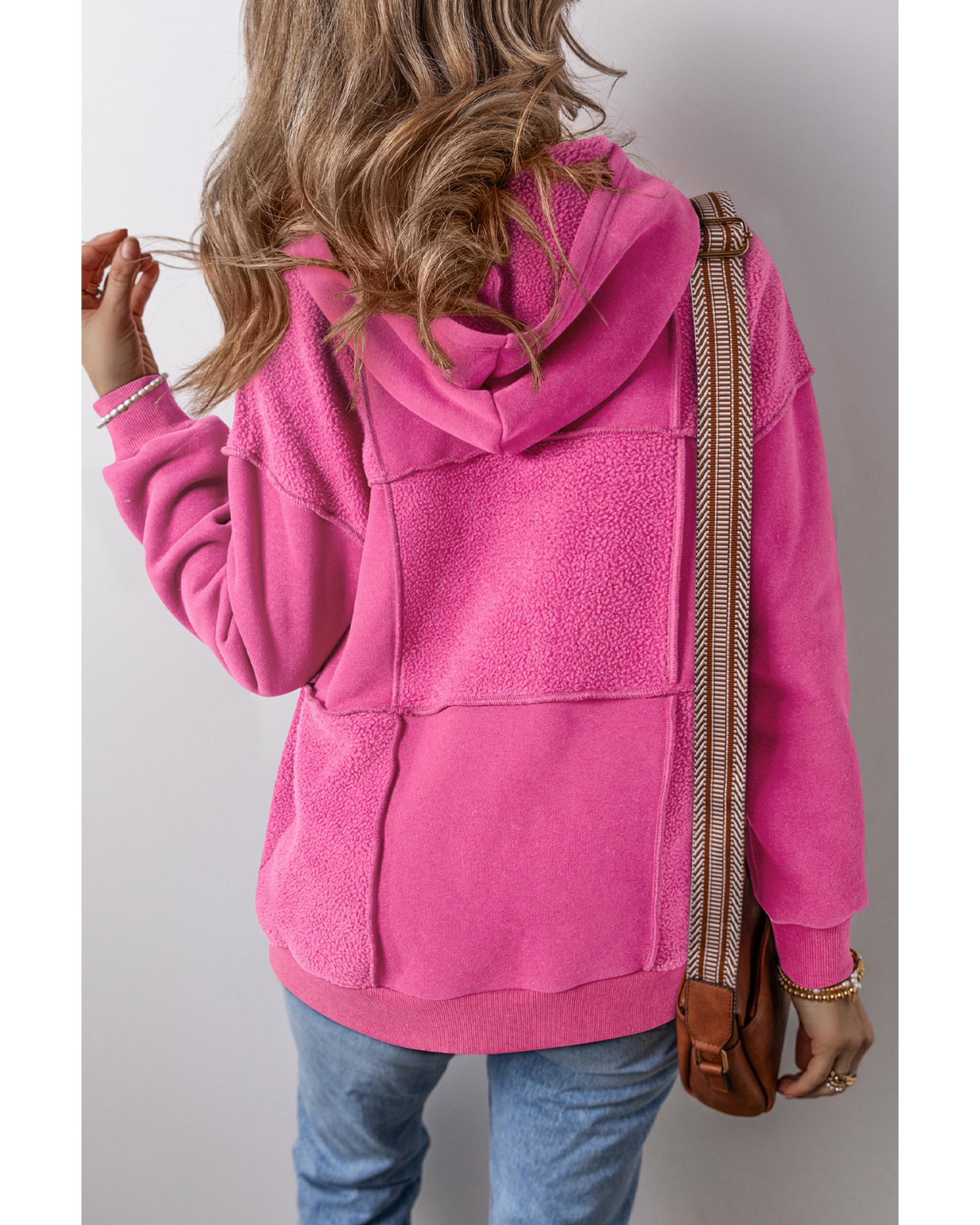 Pitaya Pink Mineral Wash Terry Patchwork Drawstring Hoodie – M