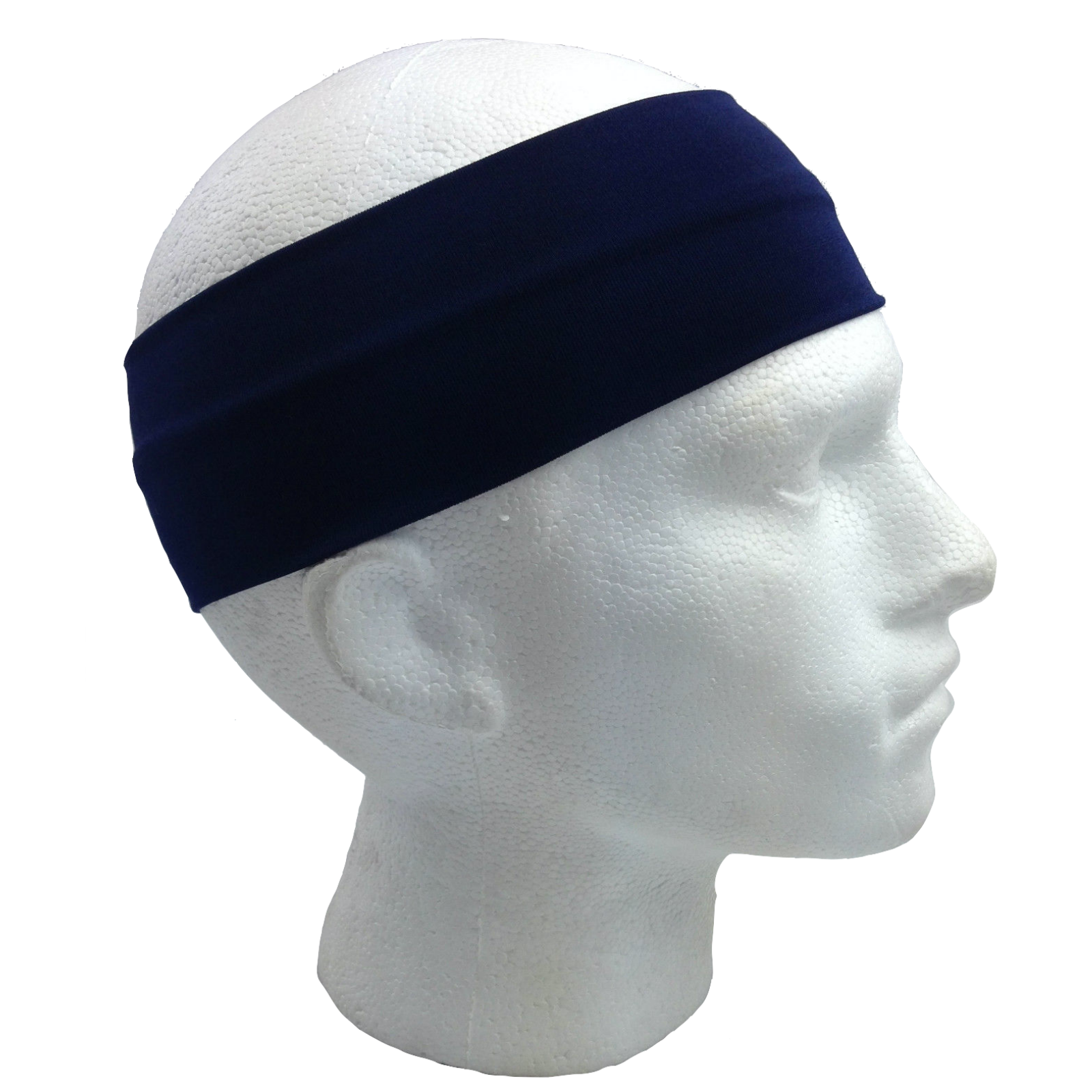 PLAIN HEADBAND Elastic Stretch Sports Yoga Hair Band Unisex 8cm Wide Wrap – Navy Blue