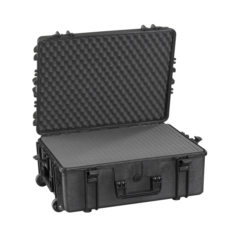 Watertight case on trolley and wheels to transport and protect fragile and valuable objects. Max Cases are created to offer superior protection from water, dust and impacts IP67, ATA300 and military certifications.