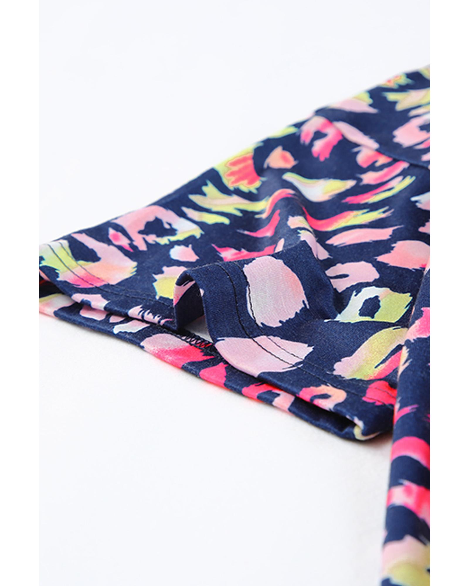 Plus Size Leopard Colorblock Short Sleeve Top – 1X