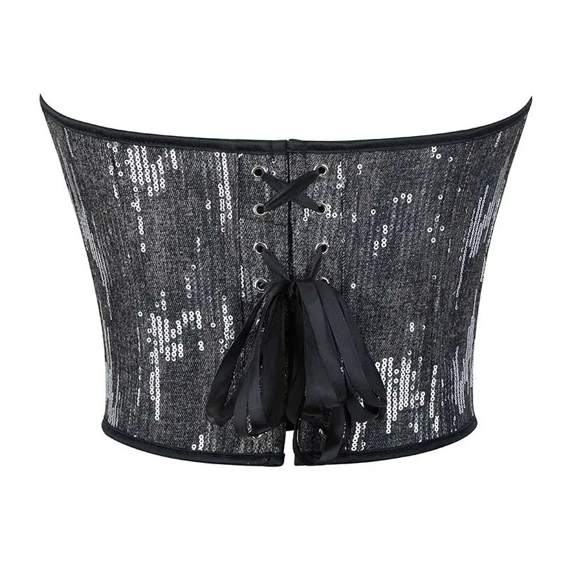 Plus Size Silver Sequin Crop Top With Lace Detail 14 Fishbones Support S-Xxxl – Xxl