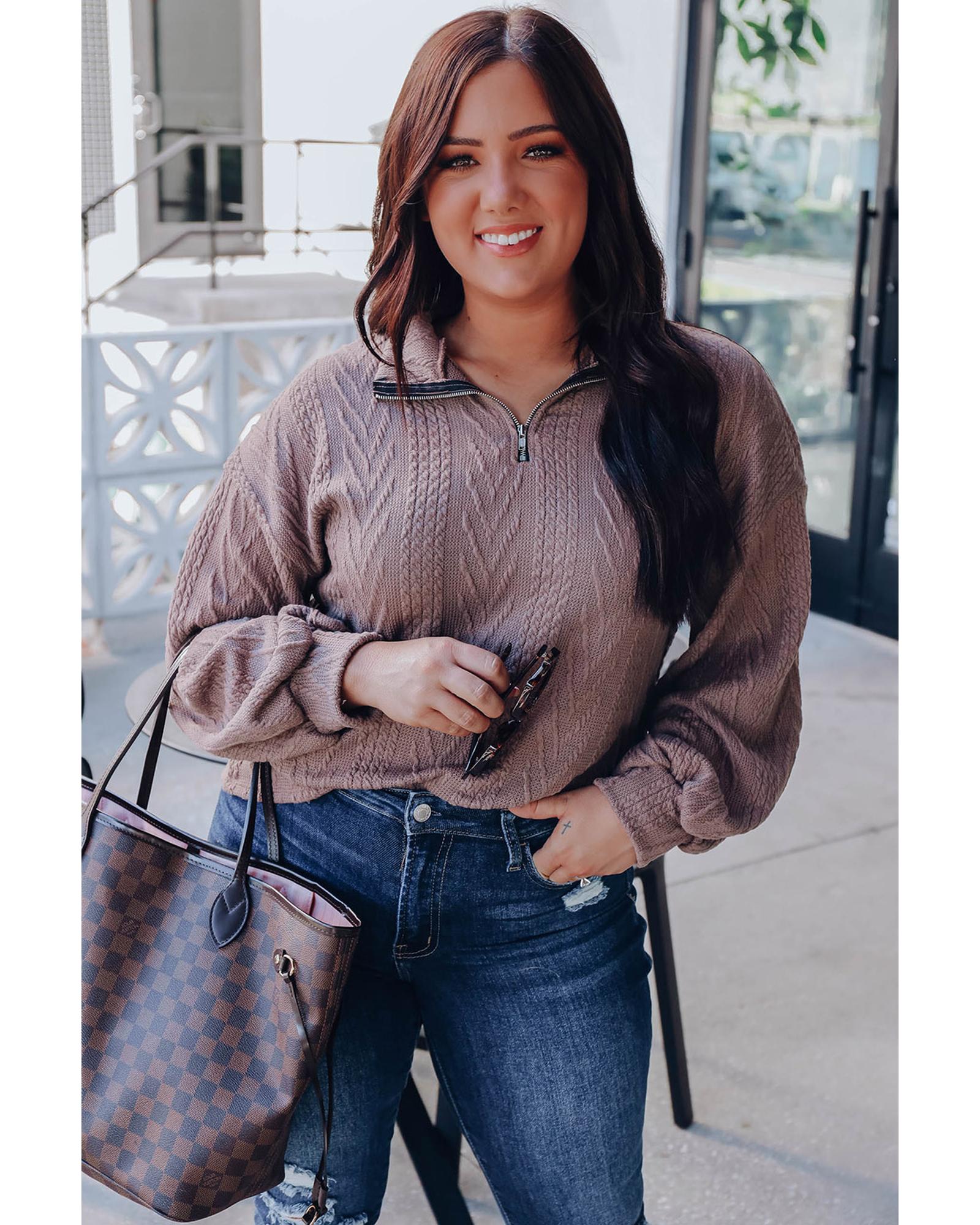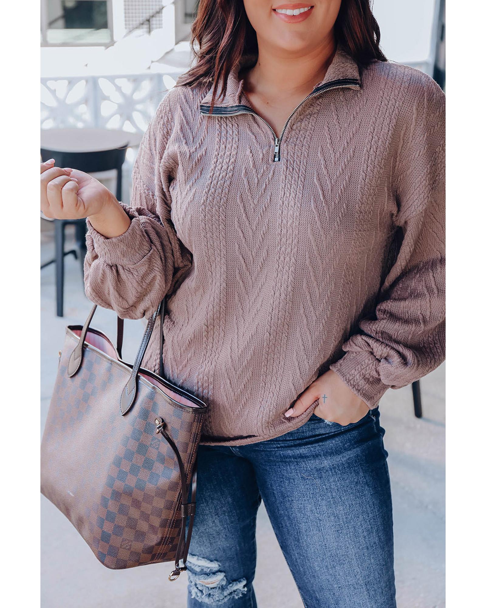 Plus Size Textured Knit Zip Neck Pullover – 1X