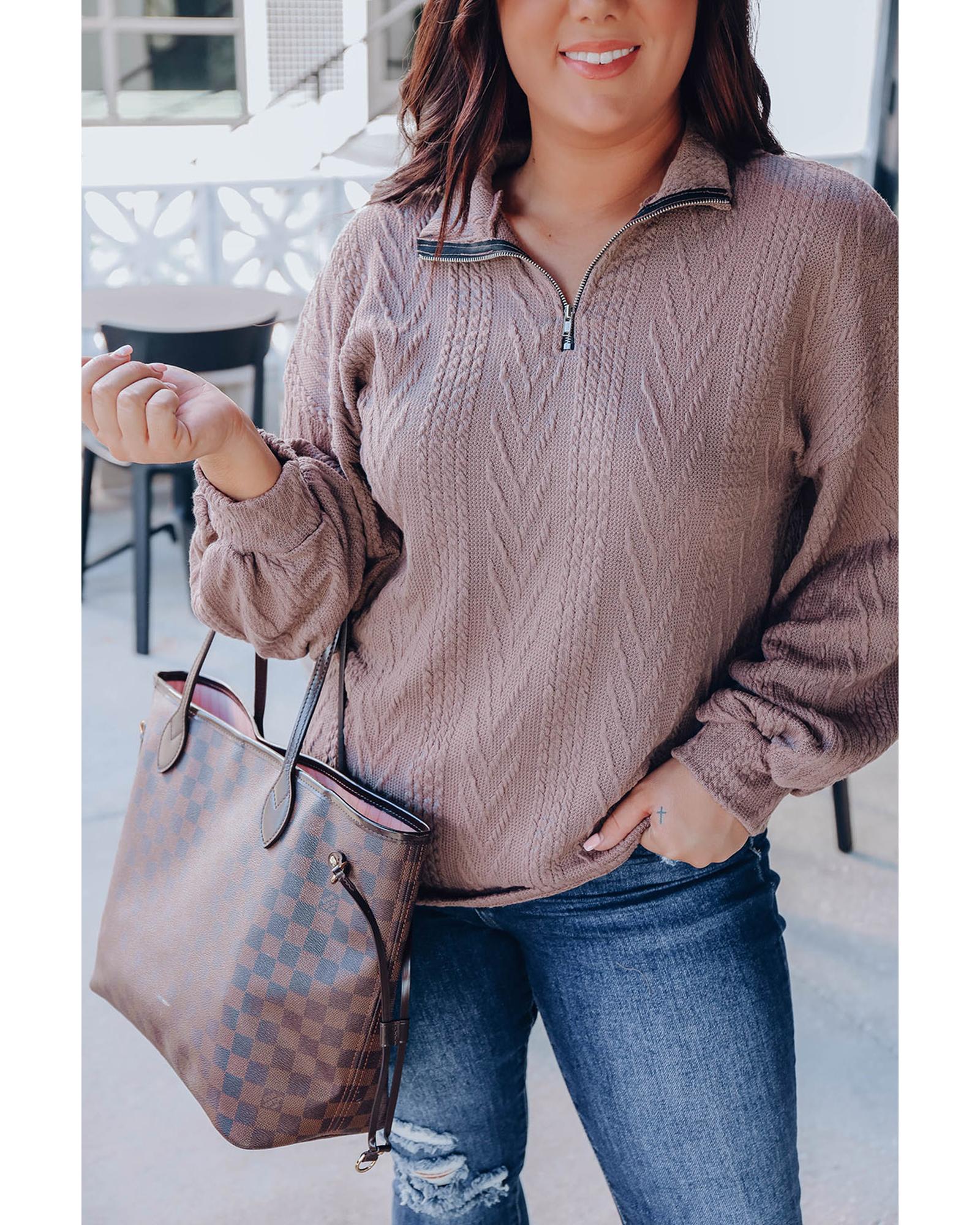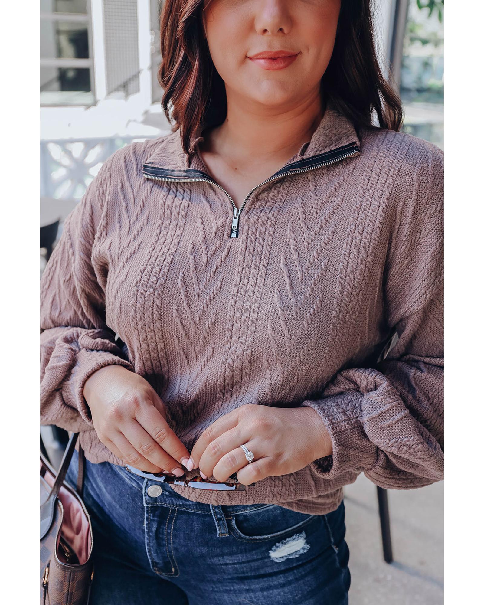 Plus Size Textured Knit Zip Neck Pullover – 2X