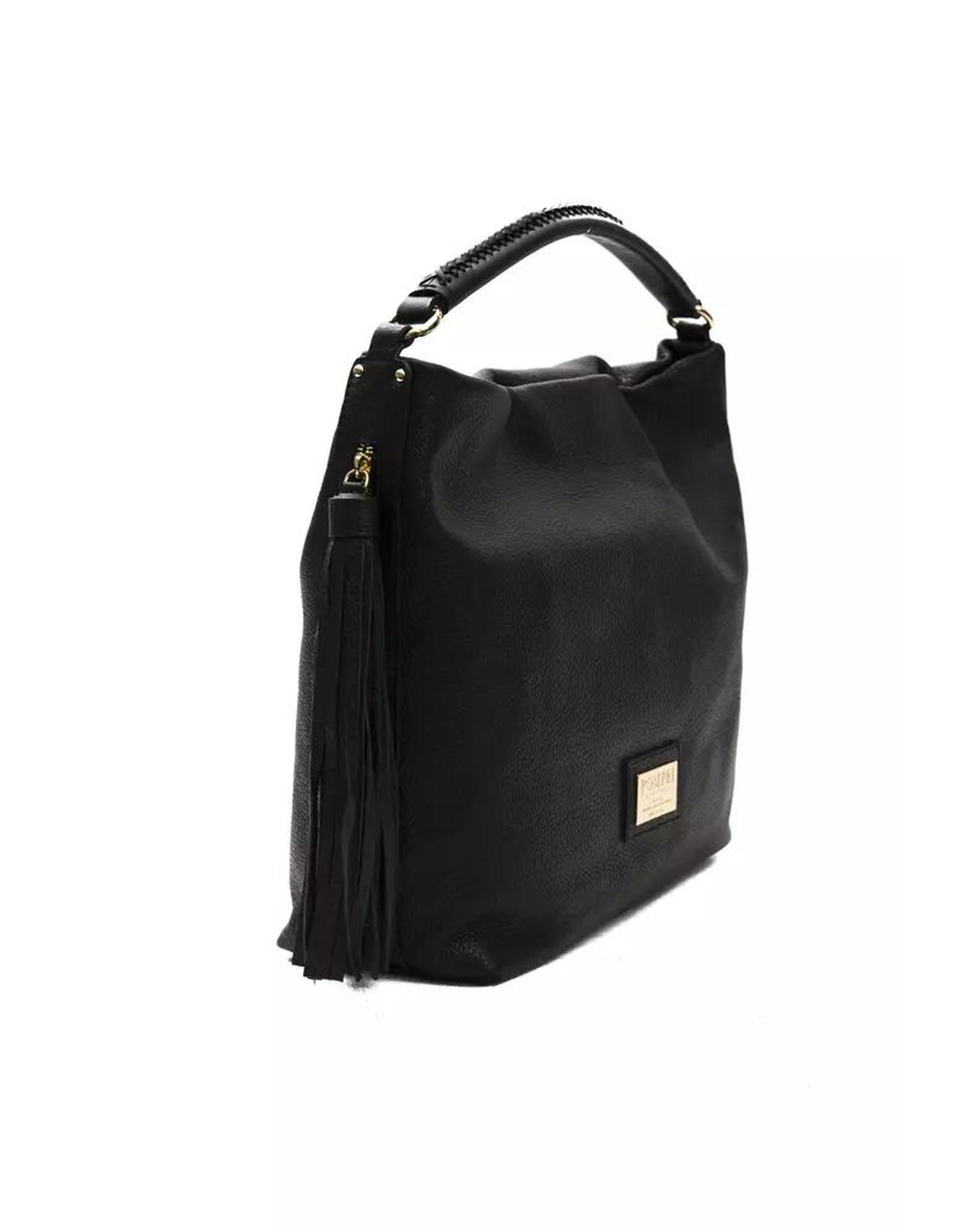 Pompei Donatella Women’s Elegant Black Leather Shoulder Bag – One Size