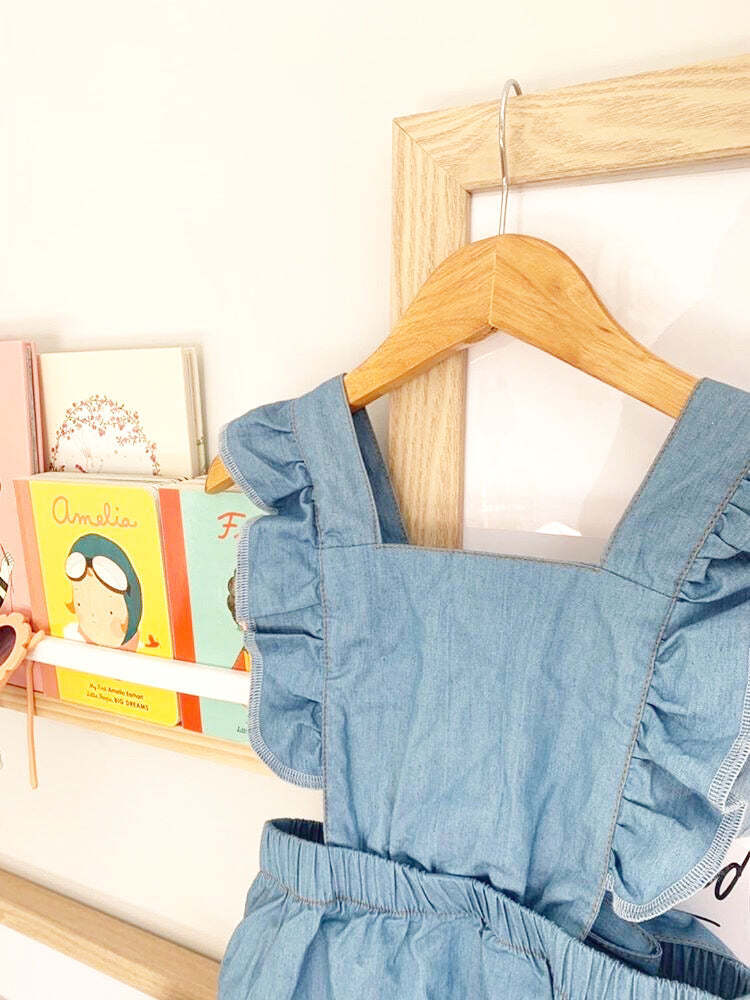Adore her with pretty frills, this little romper is just the thing for spring and summer. The natural cotton construction will keep you new born baby or toddler nice and cool.